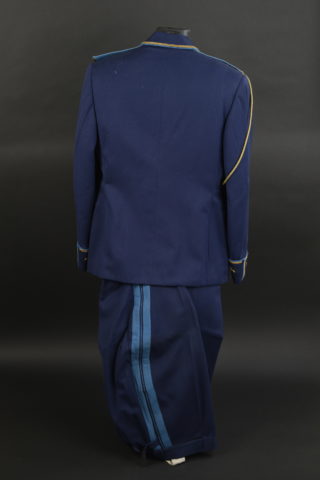 En tissu bleu marine, tous les bouton sont présents et non datés. Fourragère de grande tenue complète. Pantalon culotte de cheval en tissu bleu marine et bandes bleues ciel. A noter une... en savoir plus