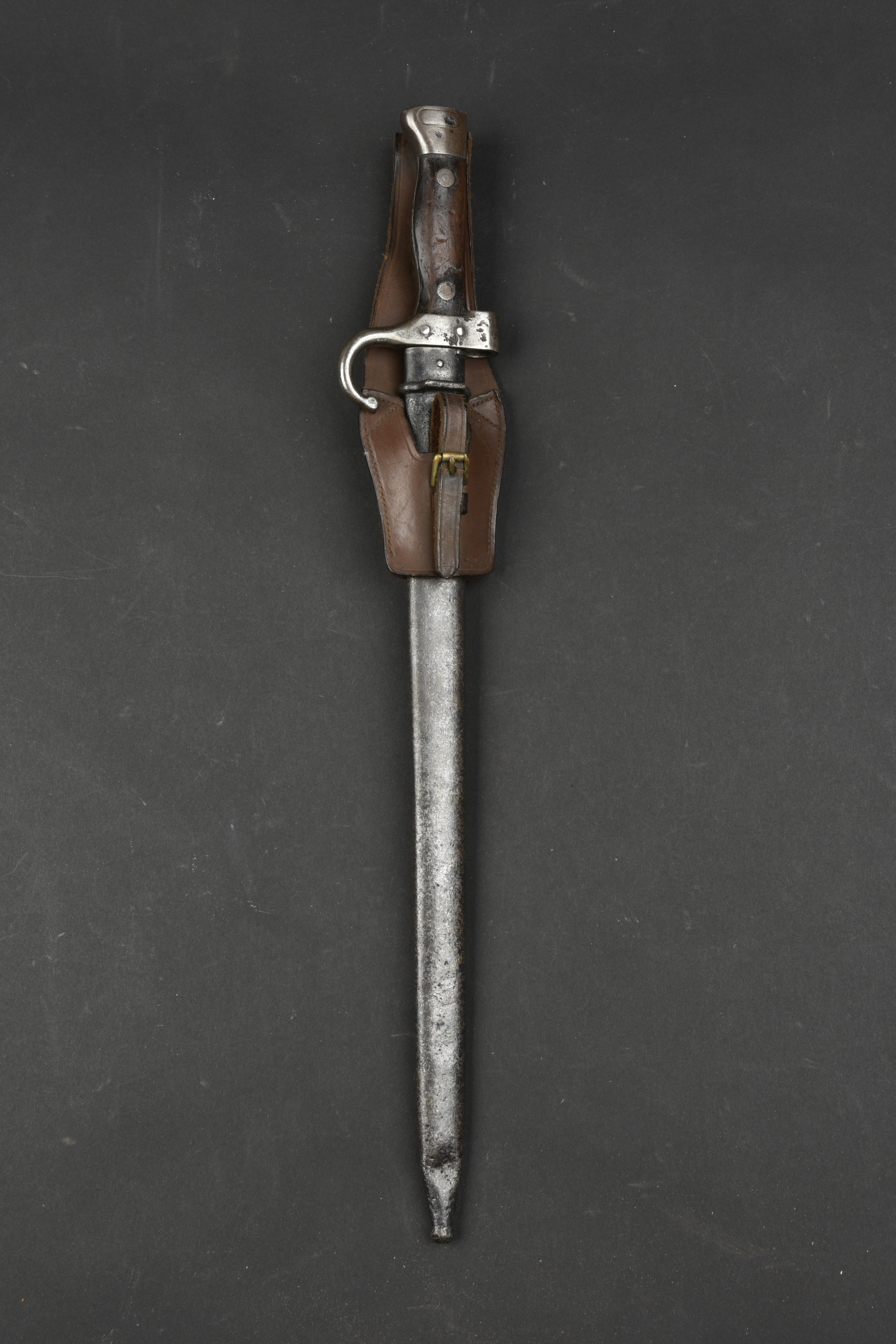 fourreau présent fortement oxydé. Avec son porte fourreau en cuir brun.