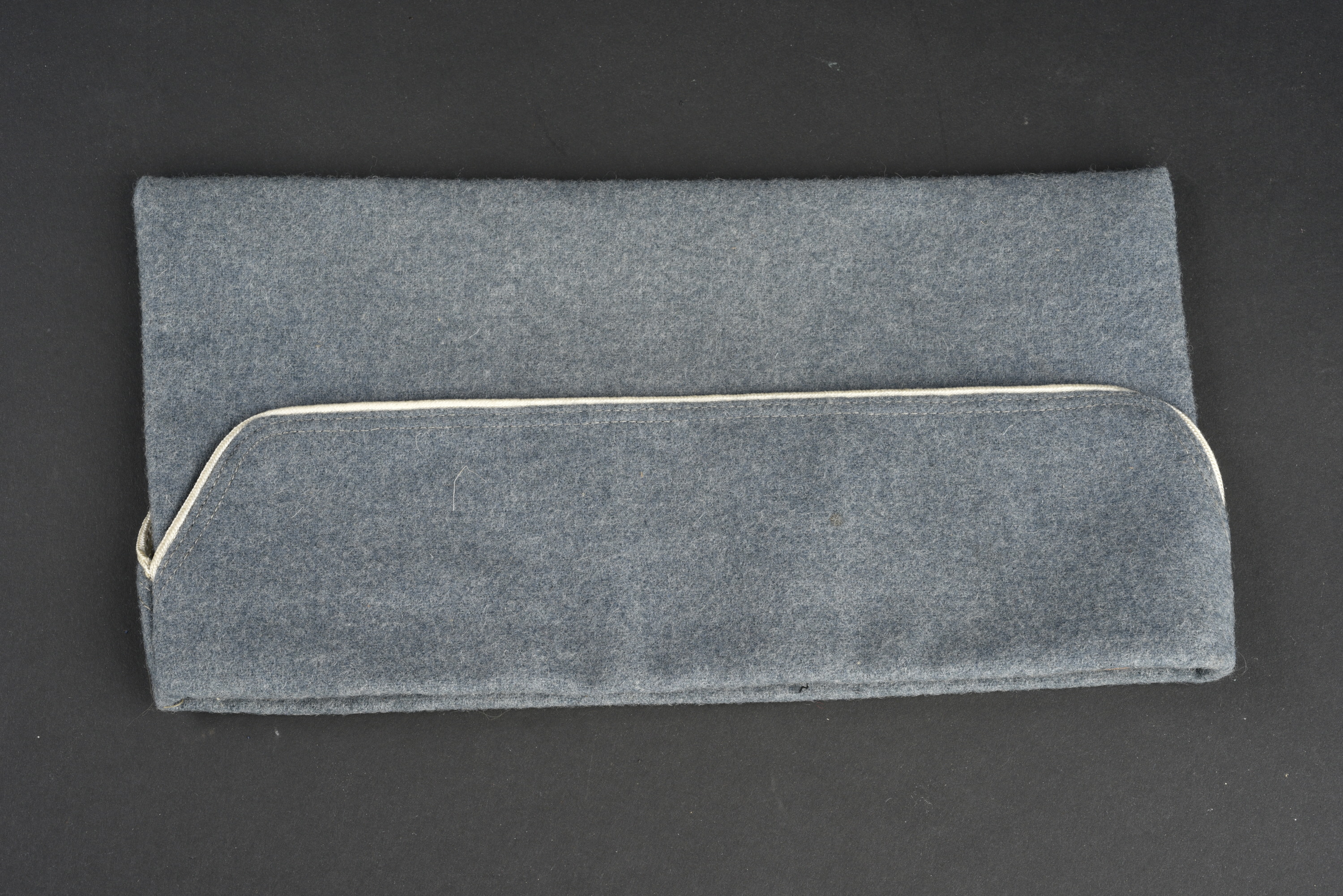 en tissu bleu horizon avec son passepoil spécifique blanc. Finition soignée du commerce. Bon état.