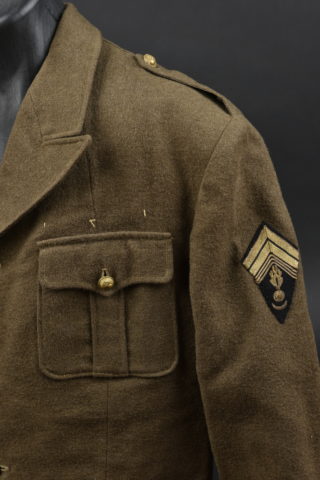 comportant un battle-dress écussonnée et son pantalon. Traces d’usures et de port.
