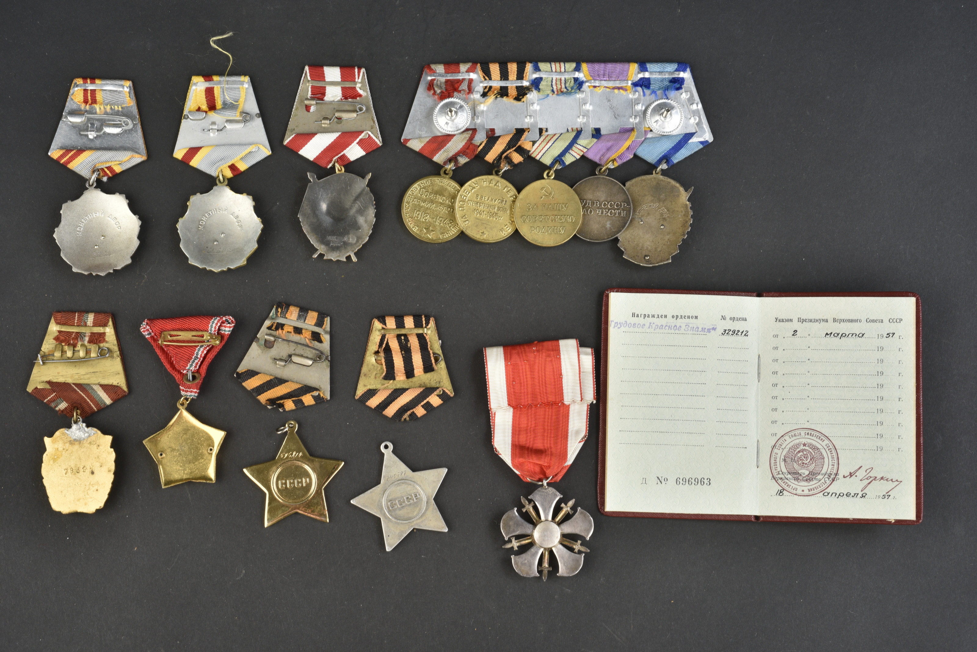 Comprenant huit ordres et décorations et un livret. Divers état, dont certaines sont des copies.