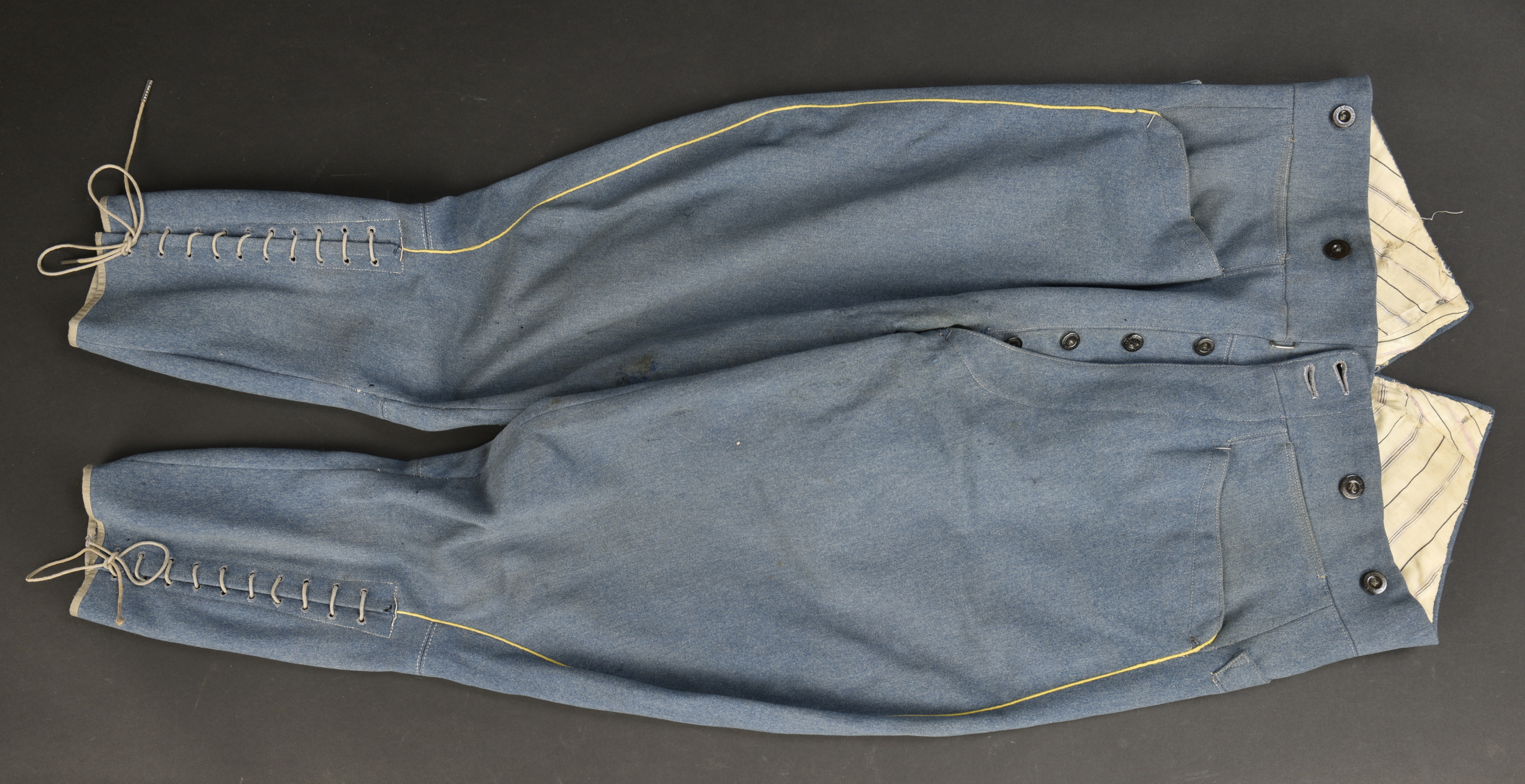 pattes de col du 65eme d’infanterie, col modifié en col ouvert, un accroc en bas de la manche droite. Culotte BH passepoil jaune, en drap fin, très présentable malgré quelques trous de mite.... en savoir plus