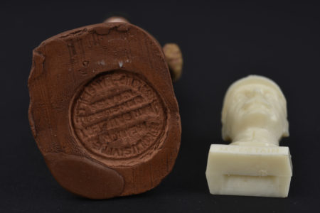 Hauteur 140 mm de style naïf mais bien représentatif. Sous le socle un cachet marqué Exclusivité Jean Gaubert Marseille. Il lui manque sa canne. On y joint un mini buste en plastique, hauteur... en savoir plus