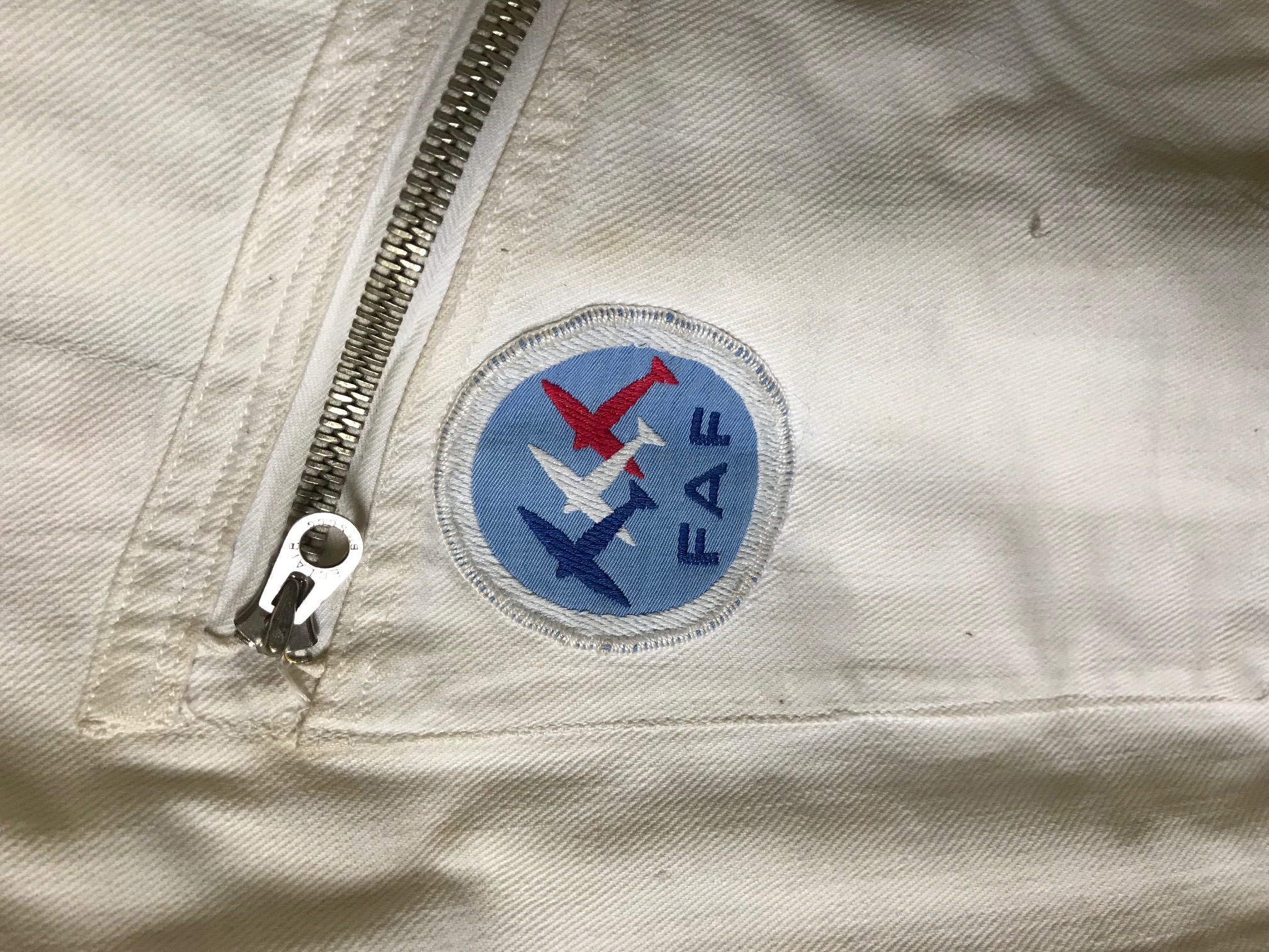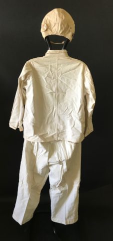 veste, pantalon et serre-tête. Cette tenue a été portée seulement pendant 2 ans en 1957/58, comme en atteste l’insigne cousu
