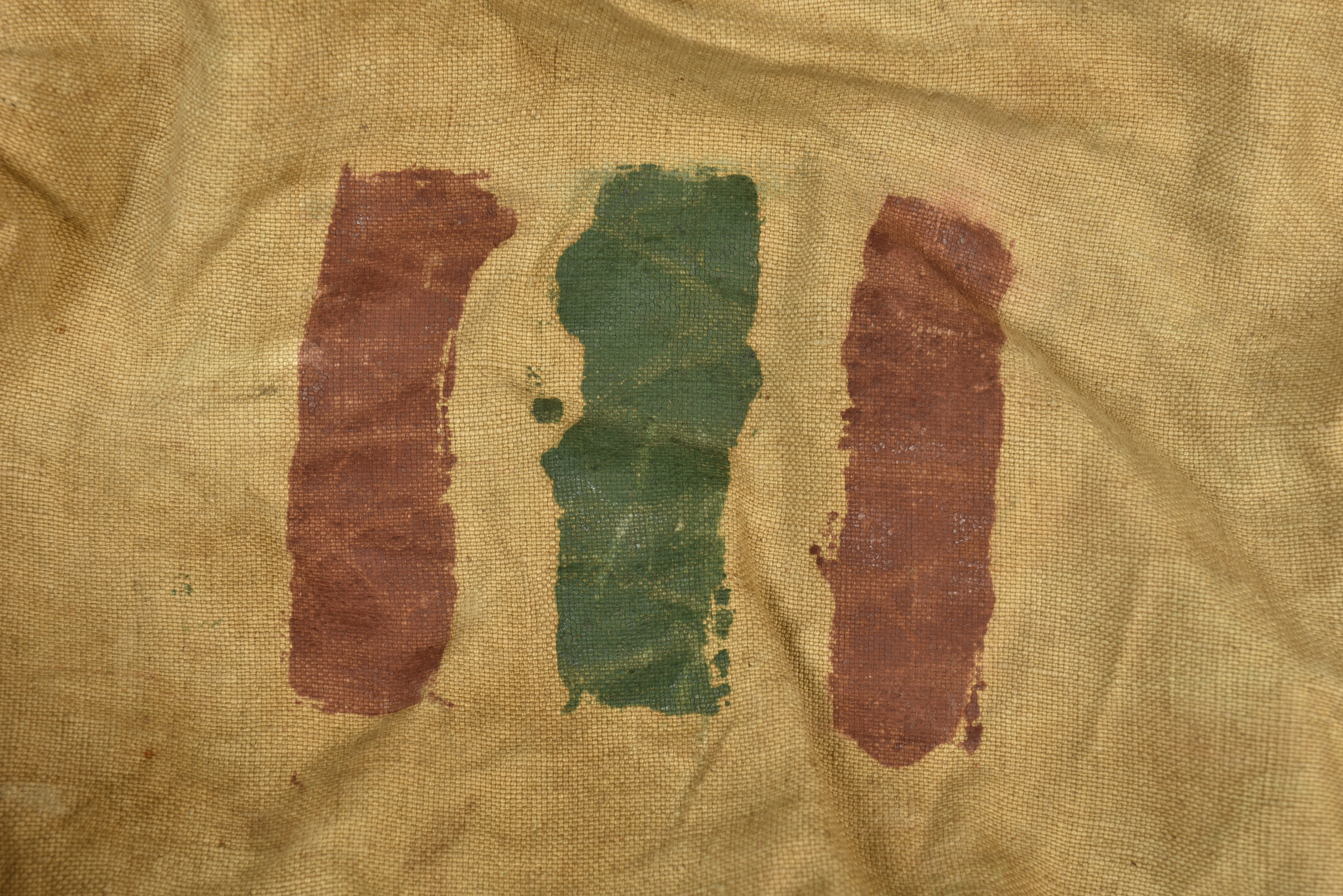 En forte toile kaki, sangle de fermeture complète. Intérieur marqué Baccraft LTD 1944 London. Triple bandes d’invasion au bas du sac rouge/vert/rouge. A noter une certaine patine de la... en savoir plus