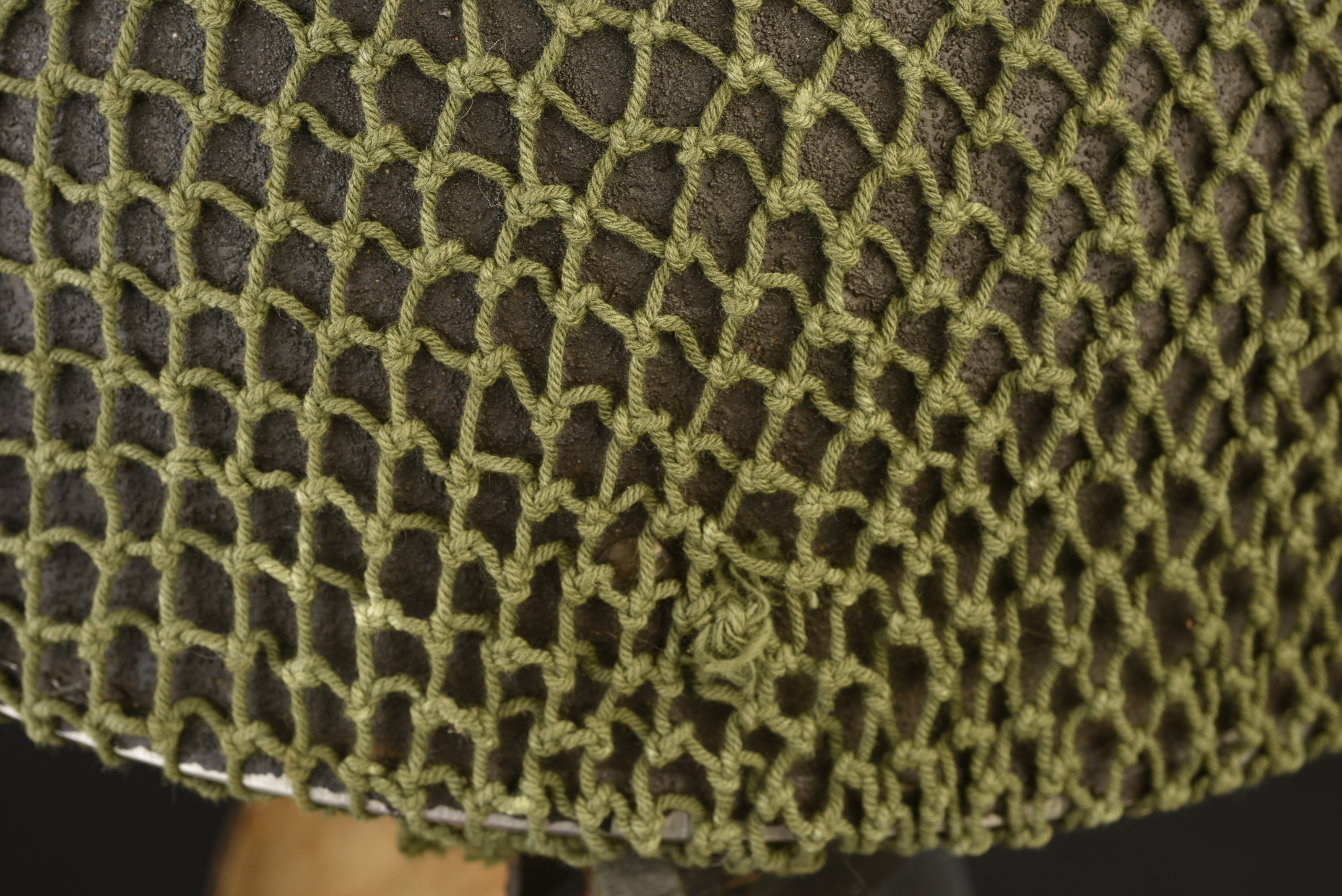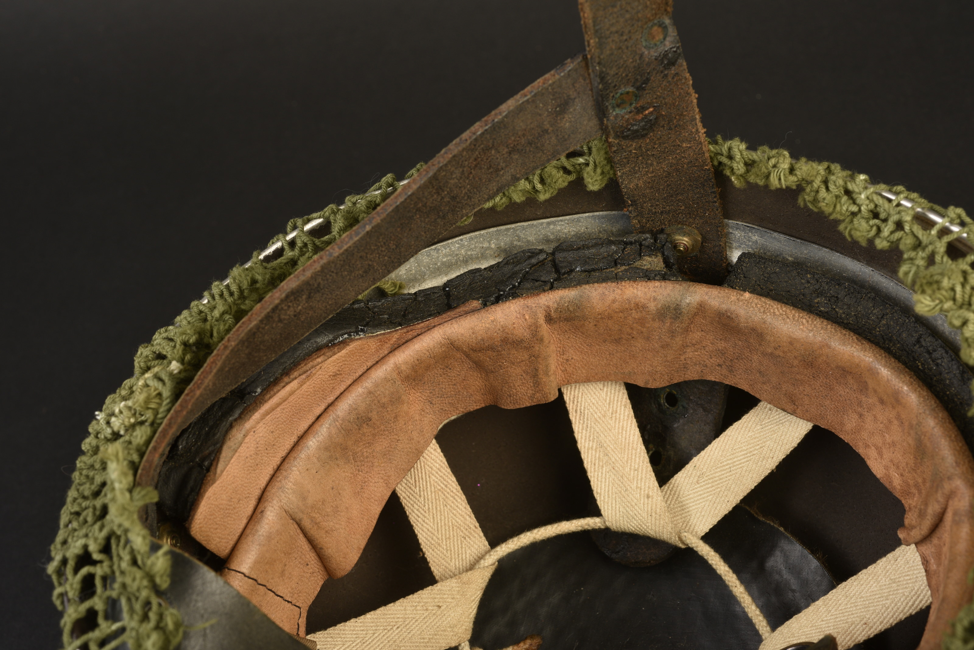 Coque de casque en métal, peinture à 90%. Intérieur complet, la partie en mousse est très sèche et comporte des craquelures. Jugulaires en cuir complètes. Fabrication G & S 1943, taille... en savoir plus