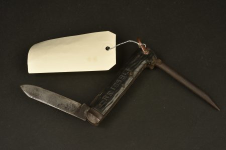 Couteau grand modèle, plusieurs lame, et un poinçon. Marquée sur le manche RE 165813. Lame marquée Scotia Mc Glory Sheffield. A noter une certaine usure et patine de la pièce. World War One... en savoir plus