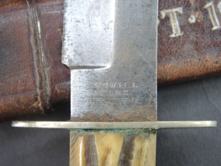 Poigné en corne. Lame complète dans sa longueur, légèrement oxydée. Fabrication J Nowill & sons Sheffield. Fourreau en cuir marqué Egypt 1916. La sangle de maintien du couteau dans le... en savoir plus