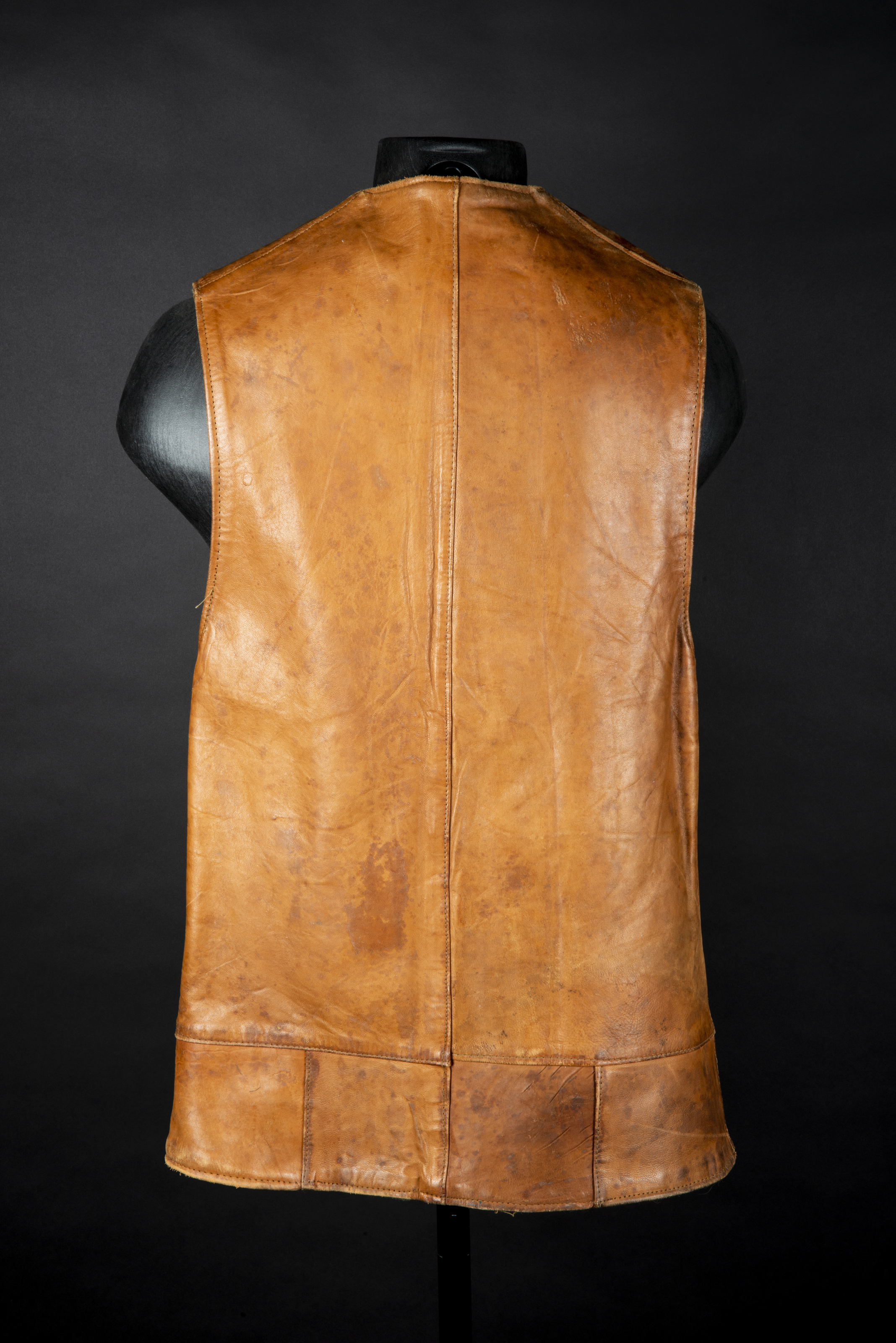 En cuir marron doublé de drap kaki, tous les boutons sont présents. Aucuns marquages visibles. Used by Infantry and US WWI Air Service, good condition, 38 chest. A noter une certaine usure et... en savoir plus