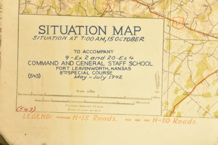 En toile imprégnée OD, mica présent. Fabrication MFGD By The Emeloid CO Arlington NJ USA. Ony joint une carte Situation Map du 15 octobre à 7h du matin. Bien marquée Command and General Staff... en savoir plus