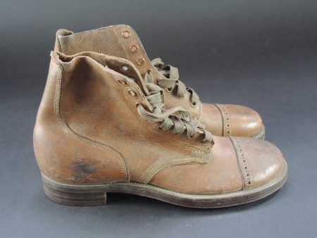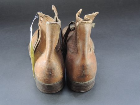 En cuir marron, bouts rapportés, huit œillets de laçage, les lacets sont présents. Semelles en cuir , marquages QMC USA, taille 6 1/2 correspondant à une pointure 39,5 française. Paire... en savoir plus