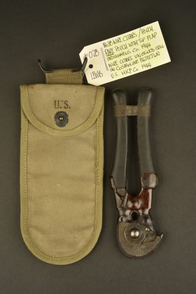 Rare modèle de housse, avec rabat marqué US. Crochet arrière présent, marquages au dos IND PLS T & A Co 1944. Pince coupante neuve de stock, les protections sont présentes, sur l’ensemble des pièces métalliques. Marquée US HKP 1944. Rare pouch with top flap, Indianapolis Co 1944, wire cutters unissued still in cosmoline protection US, HKP CO 1944. Pièce neuve de stock. C’est sans doute, l’une des collections les plus importantes de matériel de l’armée américaine en Europe. C’est, sans doute, également la plus prestigieuse. Kenneth Lewis avait 8 ans lorsqu’il acheta sa première pièce de militaria en Angleterre. Cette passion l’amena à constituer une considérable collection dont la plupart des objets, neufs de stocks, constituèrent avant l’heure un catalogue raisonné pratiquement complet de l’équipement de l’armée des États-Unis d’Amérique. L’importance de ce fonds amena ses amis à le convaincre d’écrire un livre sur le sujet. Ce fut la première bible sur le sujet intitulé From Doughboy to GI publié en 1993. Ce livre devint la référence sur le thème pour les milieux anglo-saxons du monde entier. La plupart des objets présentés dans le livre feront d’ailleurs partie de la vente. Photos supplémentaires sur www.aiolfi.com. Additional photos on www.aiolfi.com.
