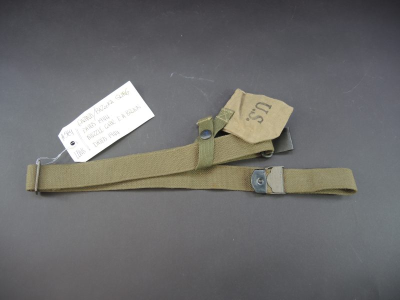 Comprenant une bretelle pour fusil Garand en toile datée 1944, un protège canon en toile datée 1944. Sling dated 1944, muzzle cover EA Brown, dated 1944. A noter une légère usure et patine... en savoir plus