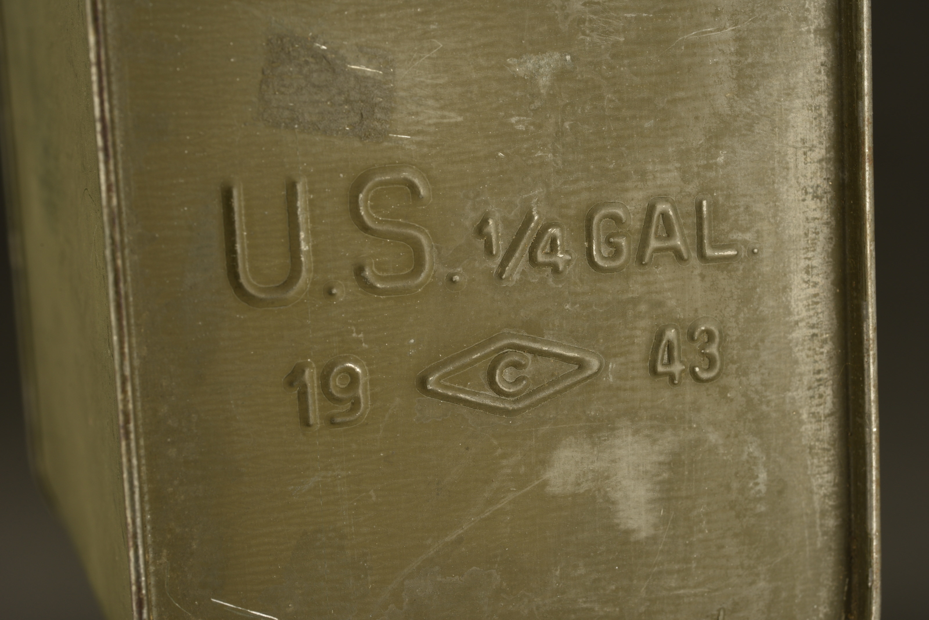 Bidon en métal, peinture kaki à 90%, bouchon complet, marquages US 1/4 Gas 1943. For cooking stove 1943 dated. A noter une légère usure et patine de la pièce. C’est sans doute, l’une des... en savoir plus
