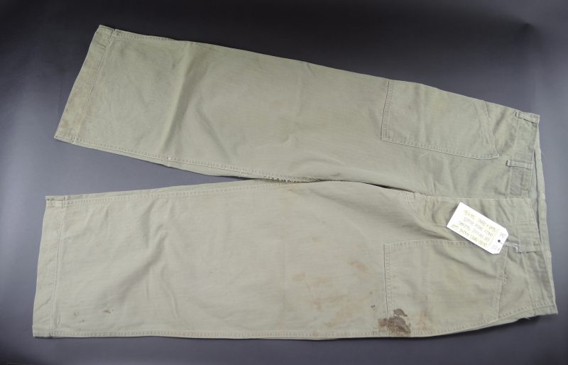 En toile HBT, tous les boutons sont présents et marqués USMC. Aucuns marquages visibles. Early patch pockets front and rear. 34 X 30. A noter une certaine usure et patine de la pièce, ainsi que... en savoir plus