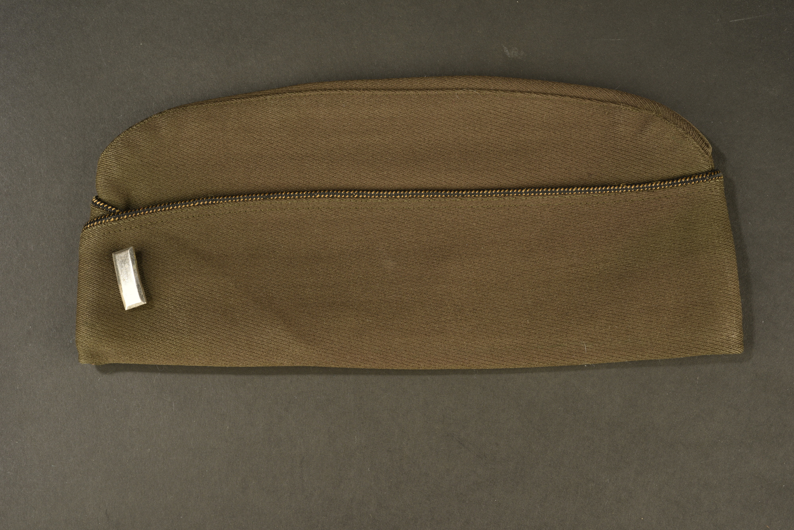 En drap chocolat, liseré noir et or des officiers. Grade de First Lieutenant métallique. Intérieur doublé en satinette chocolat. Bandeau de transpiration en cuir marron. Etiquette du fabricant... en savoir plus