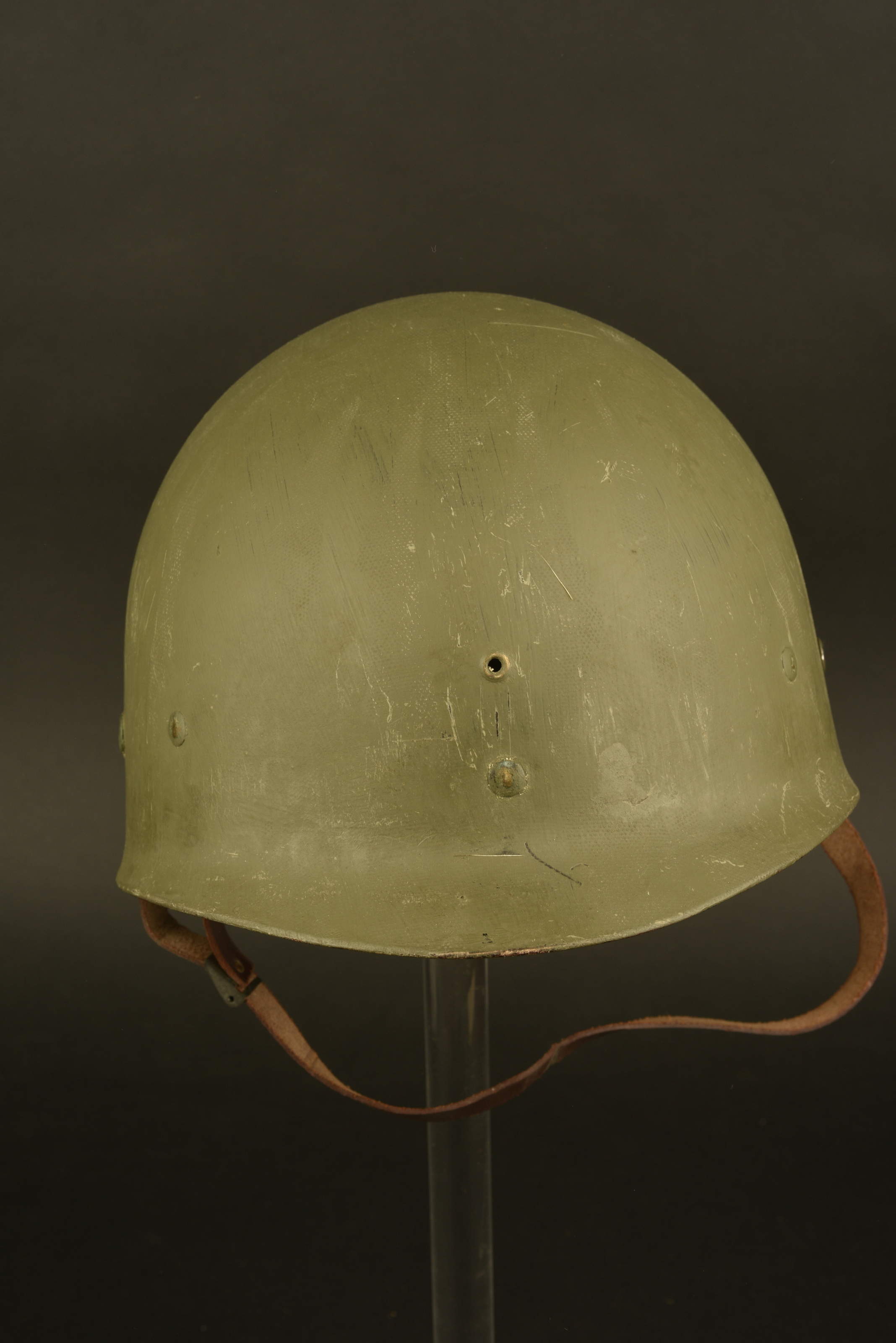 Coque de casque USM1, pontets fixes, jugulaires présentes et visiblement montées d’origine. Fermeture du jonc à l’avant. Numéro de lot 454L correspondant à une fabrication de... en savoir plus