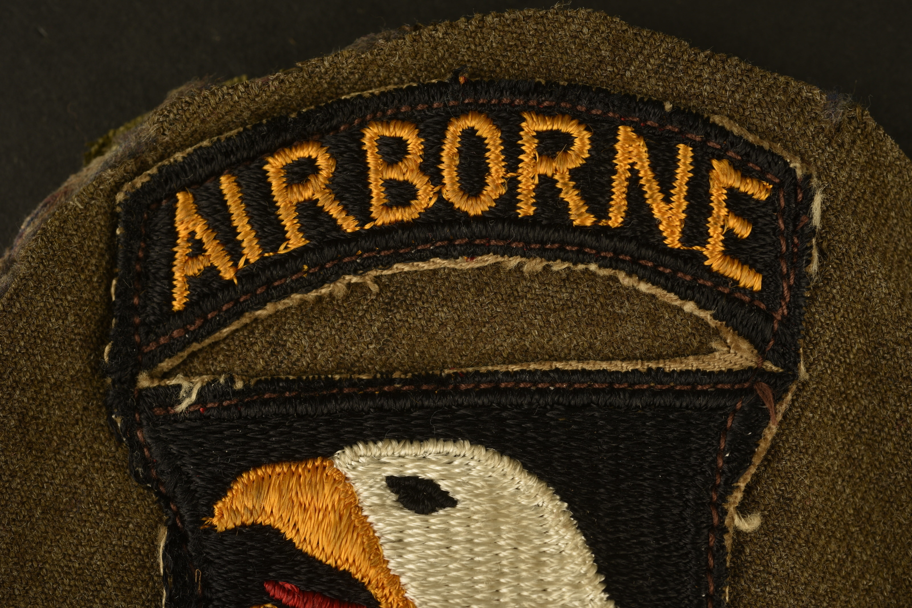 Aigle à langue rouge et œil noir, monté d’origine sur un morceau de tissu kaki, provenant d’une vareuse de sortie US. Bel ensemble monté d’origine. A noter une certaine patine de la pièce. Photos supplémentaires sur www.aiolfi.com. Additional photos on www.aiolfi.com.