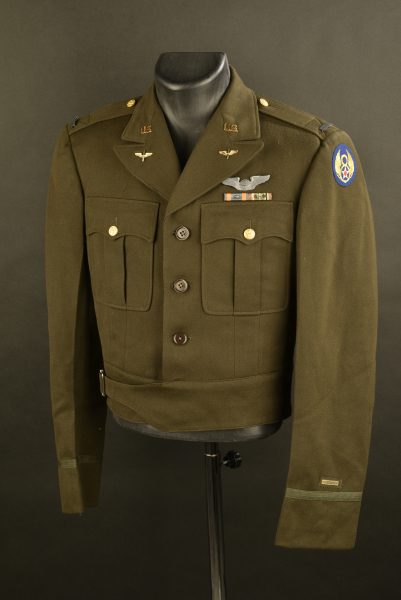 Modèle Ike, en tissu chocolat, tous les boutons sont présents. Insignes de col métalliques. Patch de la 8ème Air Force monté d’origine. Grade de Lieutenant au épaules. Brevet... en savoir plus