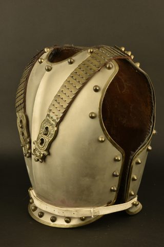 Comprenant son casque avec sa plaque, ses jugulaires et son crin spécifique de l’unitée. Intérieur en cuir défraichi. Cuirasse complète avec ses deux bretelles à écailles. Matelassure... en savoir plus