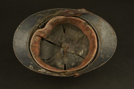 Coque de casque première guerre mondiale, peinture bleue horizon à 80%, quelques bosses. Insigne du génie visiblement monté d’origine. Intérieur complet, jugulaire présente. A noter... en savoir plus