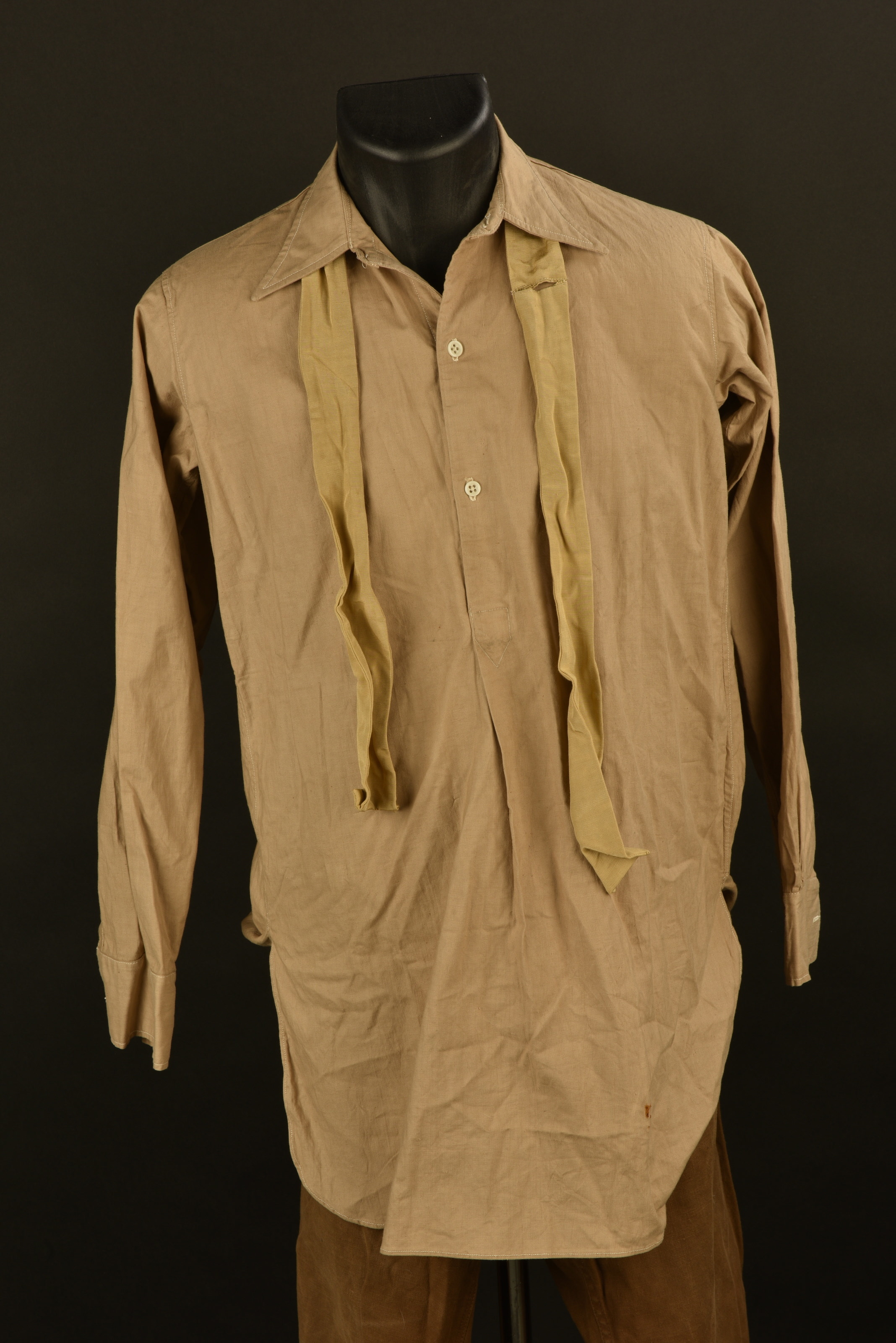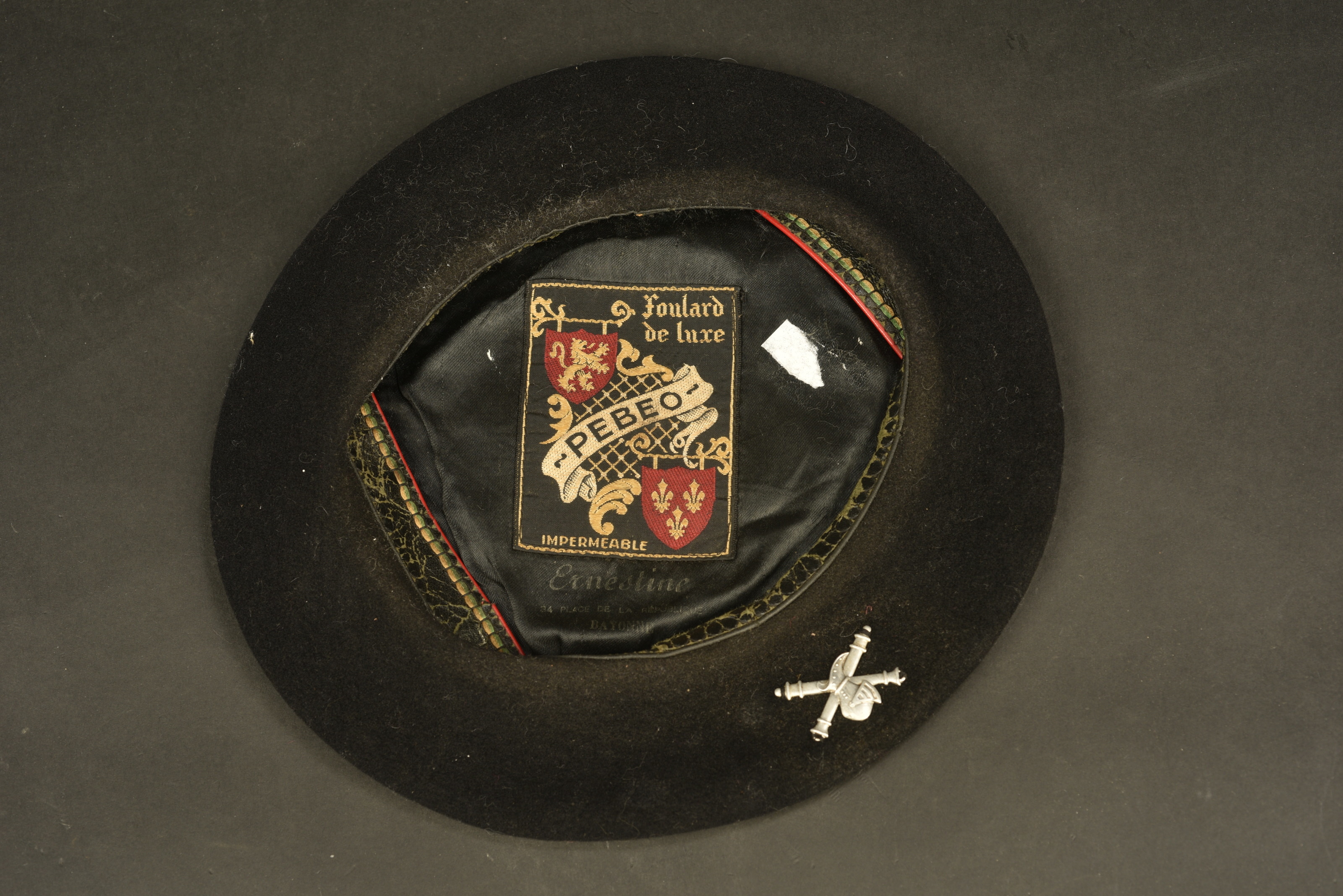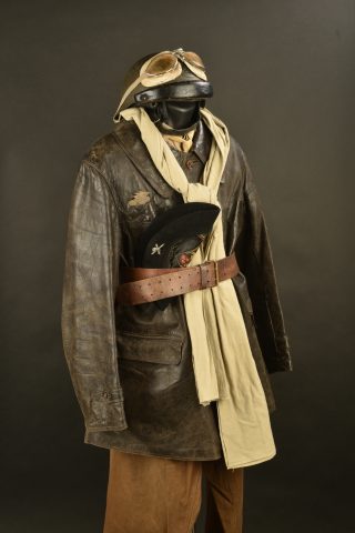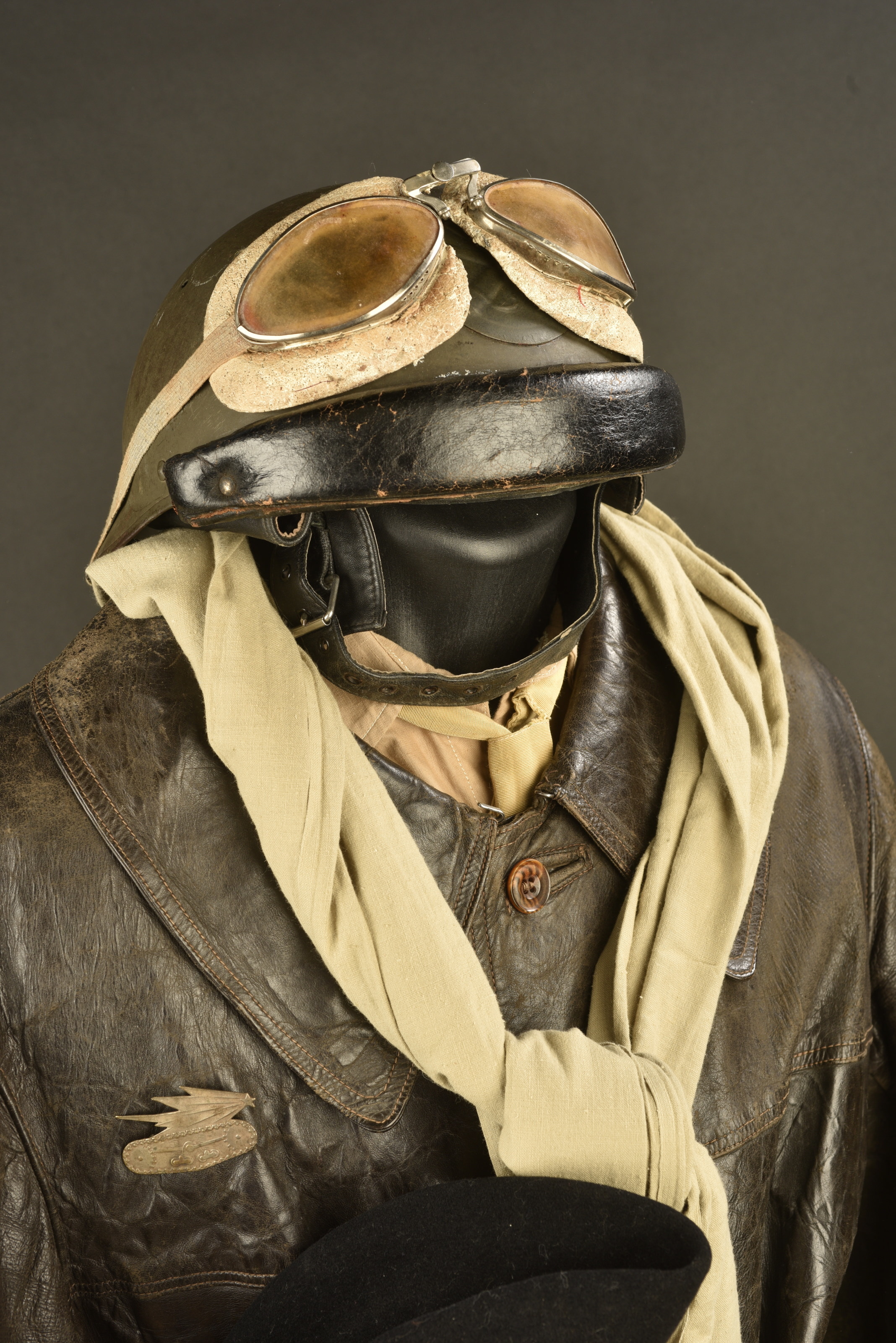 Comprenant une veste en cuir marron, tous les boutons sont présents, intérieur doublé en tissu coton, tampon illisible sur la doublure de la poche intérieure. Un chèche en tissu coton. Une... en savoir plus