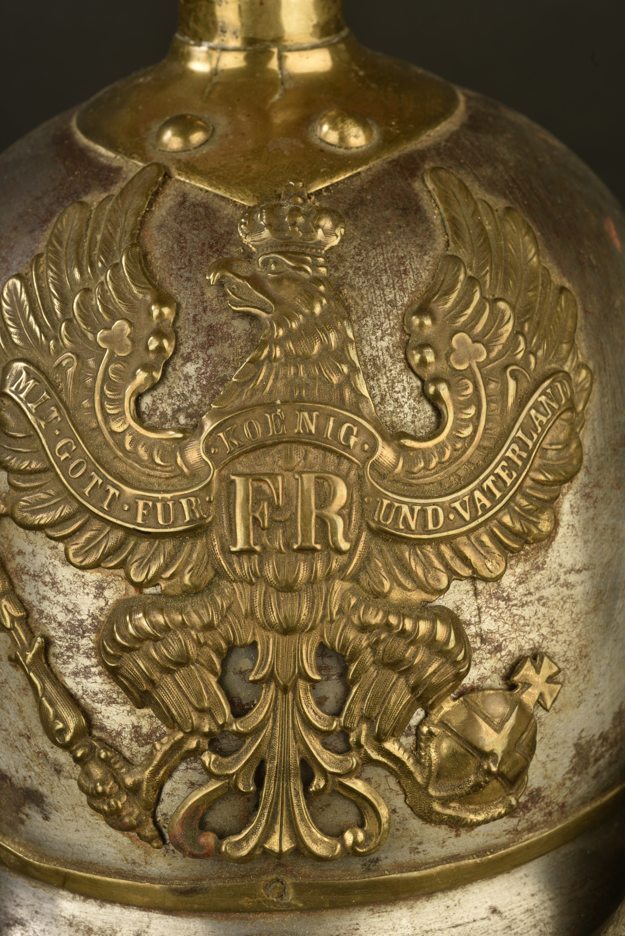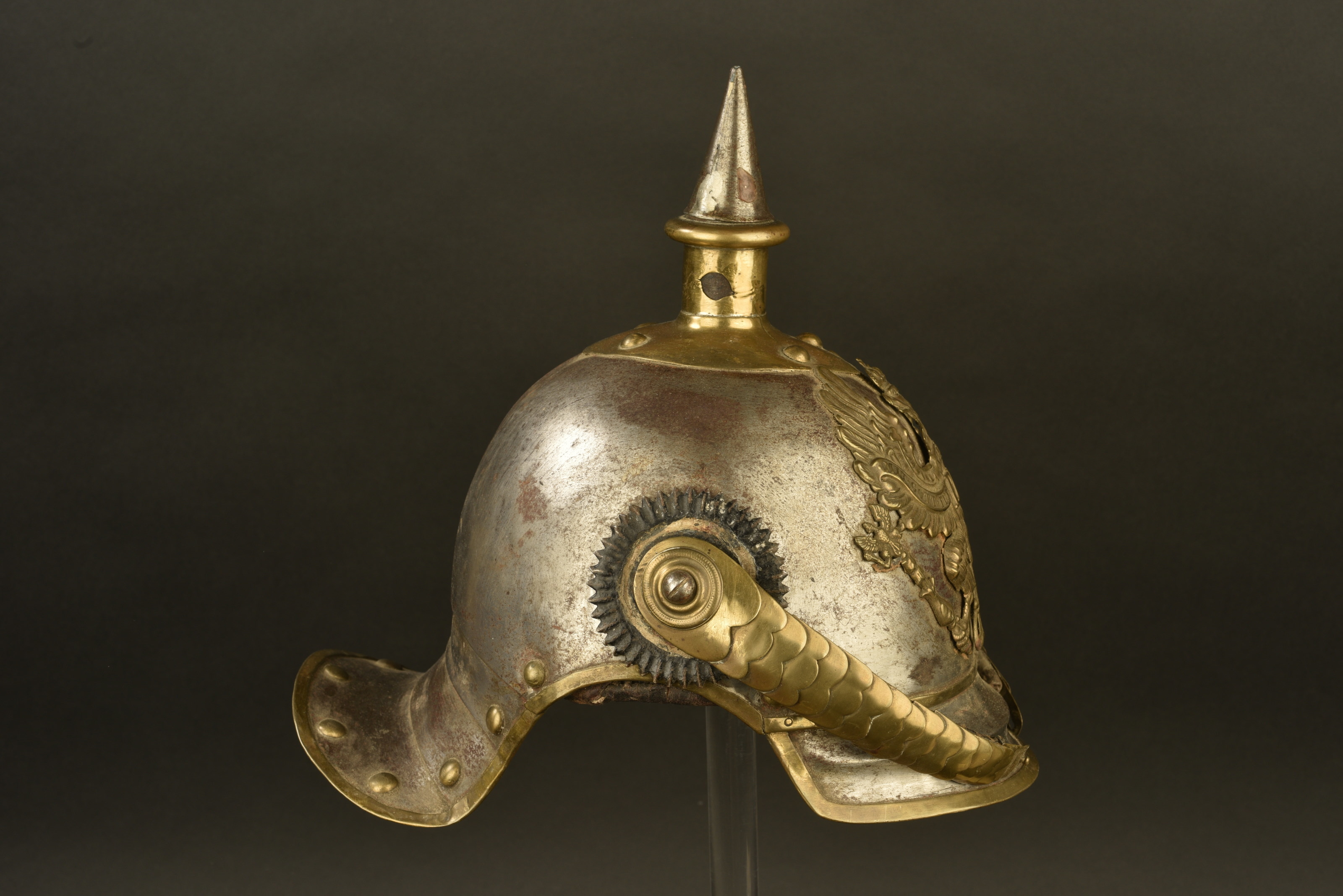 Bonne pointe, bonne plaque de cuirassier, bonne cocarde. Jugulaire avec son bon cuir (manque boucheton) et sangle (fragile). Bonne coiffe intérieure (fragile). Bon marquage régimentaire sous la... en savoir plus
