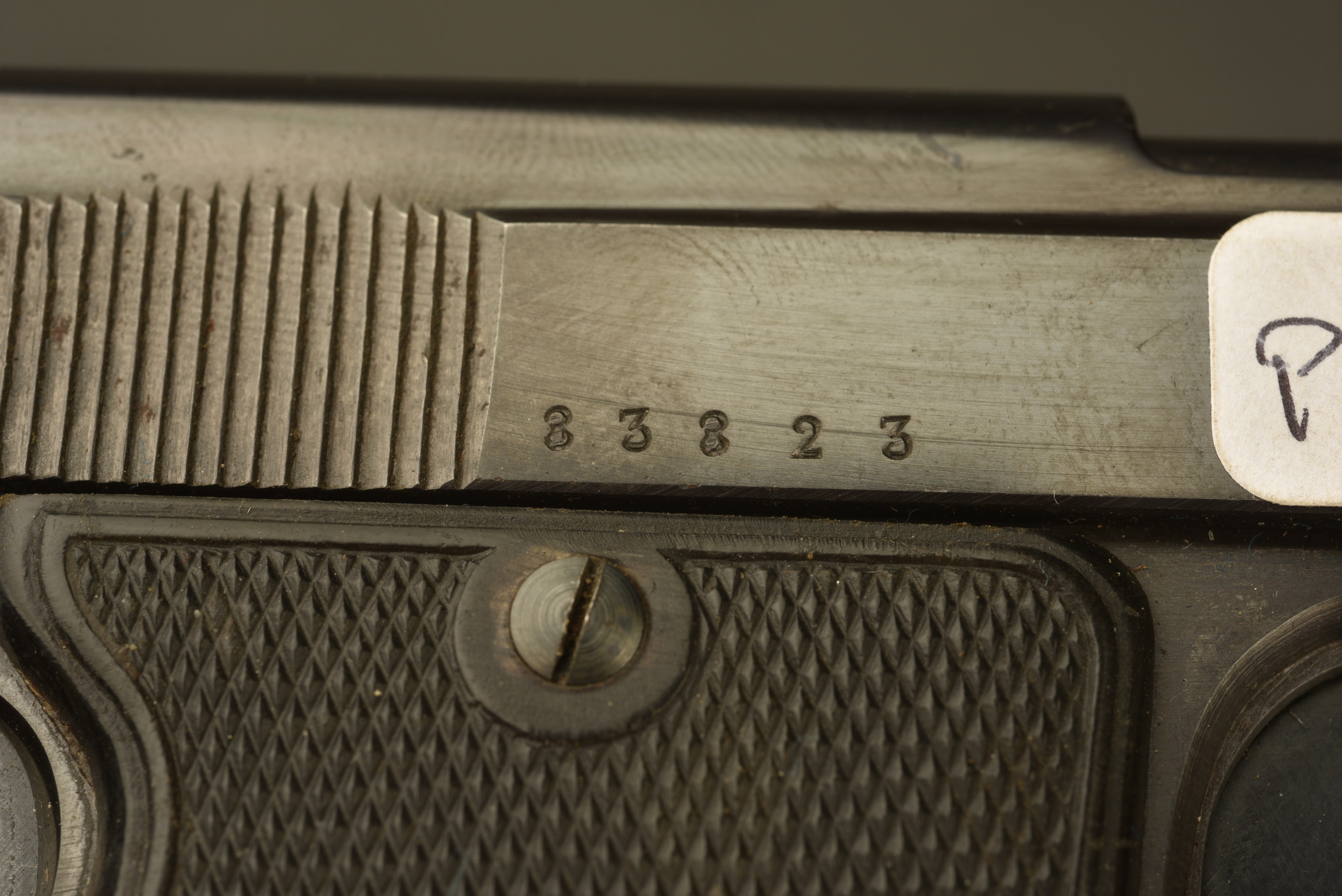 Calibre 6,35. N° 83823, état neuf, manque l’extracteur. Arme délivrée aux détenteurs d’une autorisation de catégorie B. Pour les personnes non détentrices de cette catégorie il sera impératif de faire neutraliser l’arme par nos soins exclusivement, aux frais de l’acheteur suivant les nouvelles normes européennes du Banc d’Epreuve de Saint Etienne. Photos supplémentaires sur www.aiolfi.com. Additional photos on www.aiolfi.com.