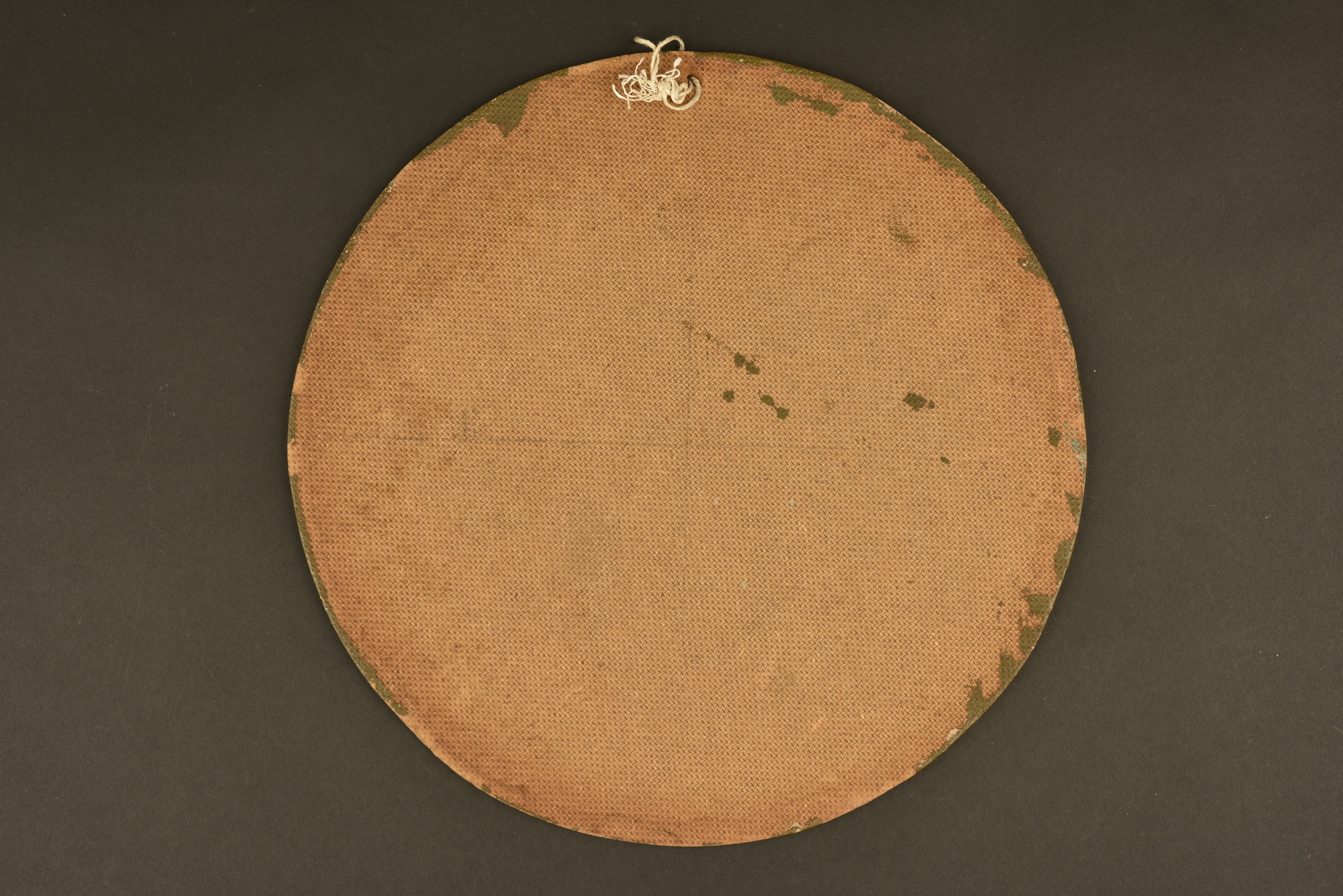 En bois, peinture visiblement d’origine. Insigne de la division couleur bleu ciel sur fond kaki. Quelques manques dans la peinture. Diamètre 30 cm. Cordelette de fixation mural présente. A... en savoir plus