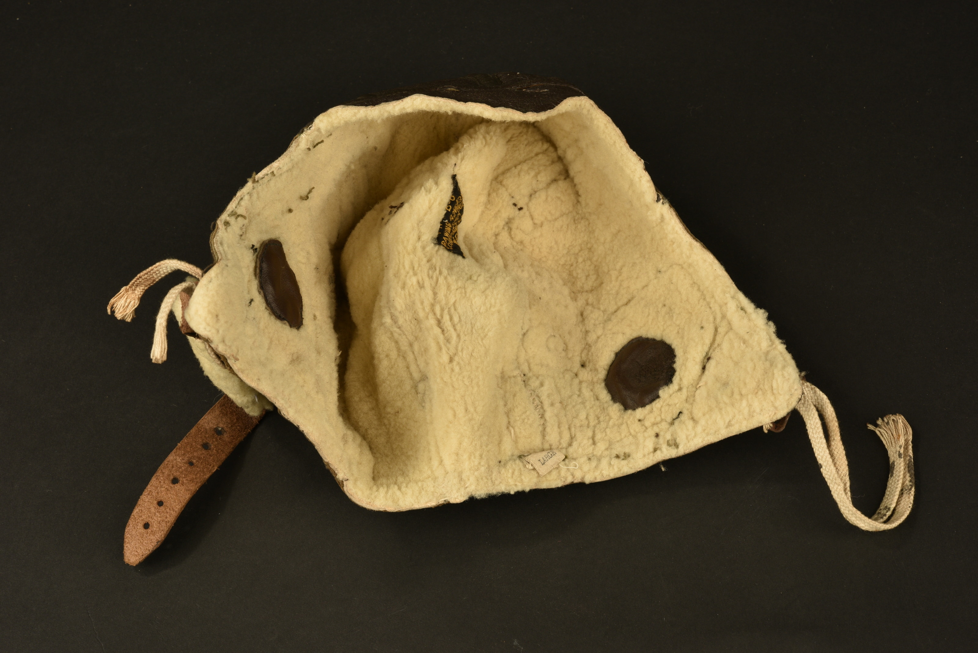 En cuir marron foncé doublé de fausse fourrure. Dépourvue d’emplacement pour les écouteurs. Le cordon de serrage est présent. Jugulaire en cuir doublé de fausse fourrure au niveau du... en savoir plus