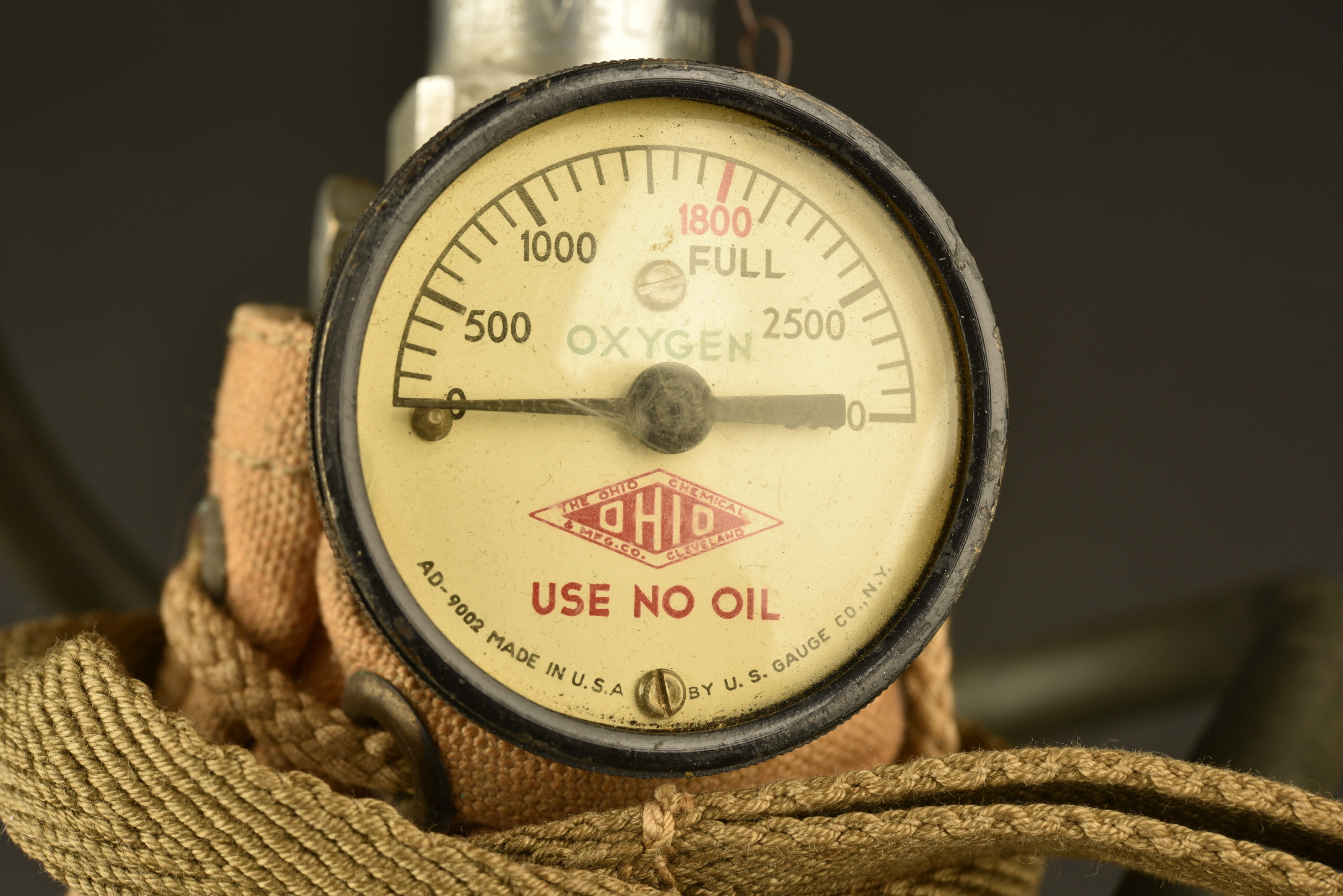 Modèle H-1, dans sa housse d’origine. Manomètre complet. Flexible complet sans cassure ni manques. Housse neuve de stock, bien marquée US Air Force NO 42G7365. Pièce neuve de stock.... en savoir plus