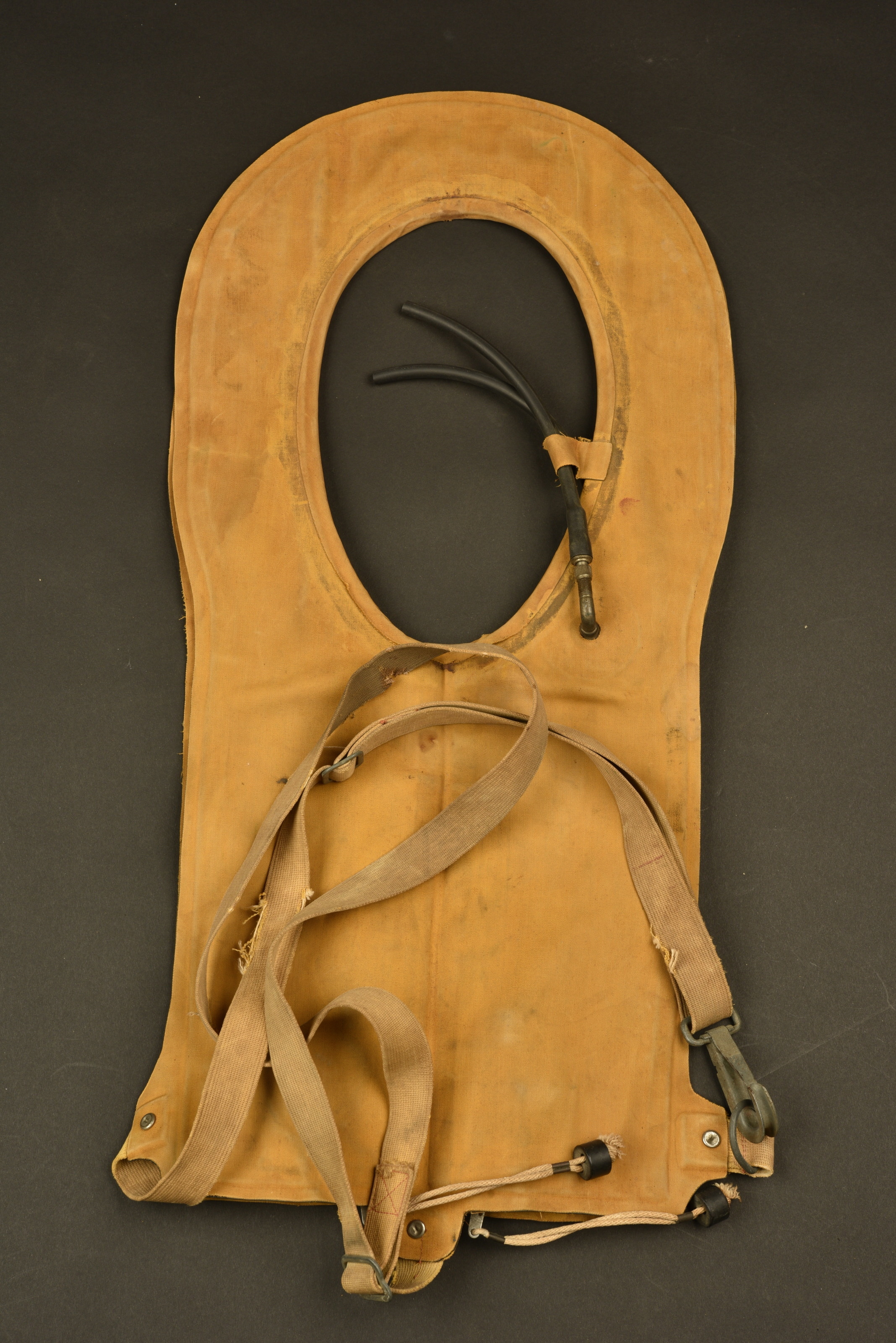 En toile jaune caoutchouté. Les deux embouts buccaux sont présents ainsi que les bombonnes de CO2 permettant le gonflage automatique. Toutes les sangles sont présentes. Modèle ne disposant pas... en savoir plus