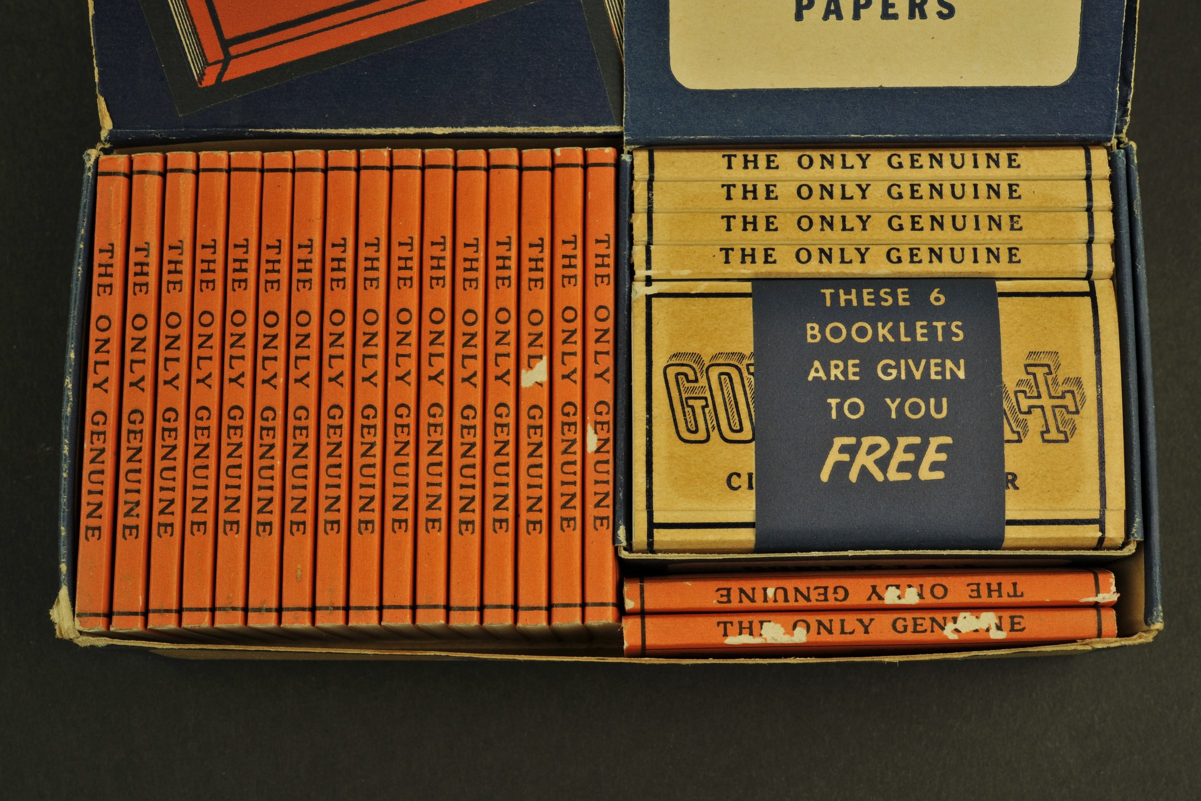 Boite en carton complète, marquée Gommé La +, très légère usure de la boite. Contenant de nombreux paquets de papiers pour cigarette. Ensemble visiblement complet. A noter une certaine usure... en savoir plus
