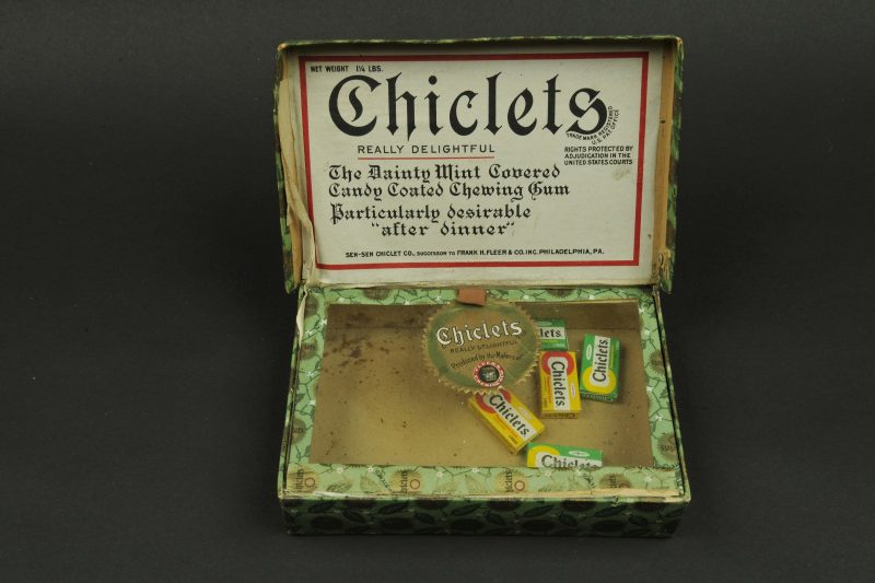 Boite en carton en très bon état, sans manques important. Marquages sous le couvercle Chiclets, fabrication Sen-Sen Chiclet Co successor to Frank H Fleer & Co Inc Philadelphia PA. Contenant... en savoir plus