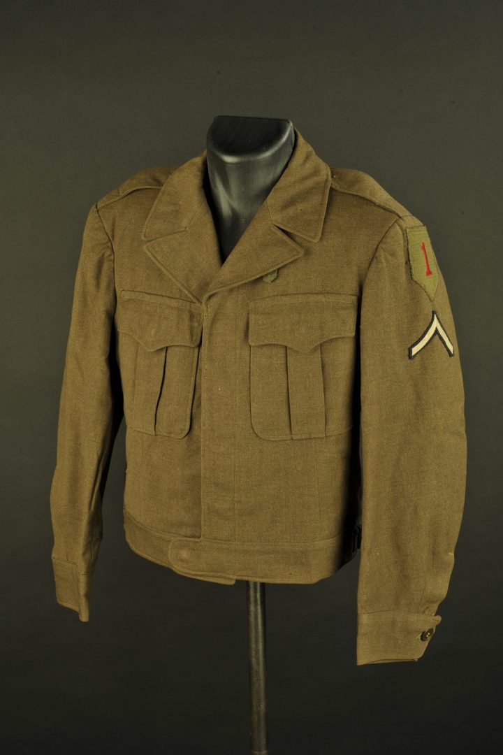En drap kaki, tous les boutons sont présents. Patch de la Big Red One, monté main. Les chevrons de grade sont montés machine. Etiquette du fabricant Joseph H Cohen & Sons Vanity Clothes... en savoir plus
