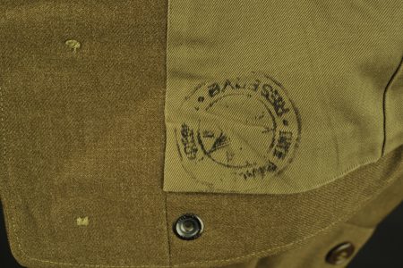En drap kaki, tous les boutons sont présents. Patch de l’army service forces monté main. Disques de col troupe de l’infanterie. Etiquette dans le col indiquant une taille 40S.... en savoir plus