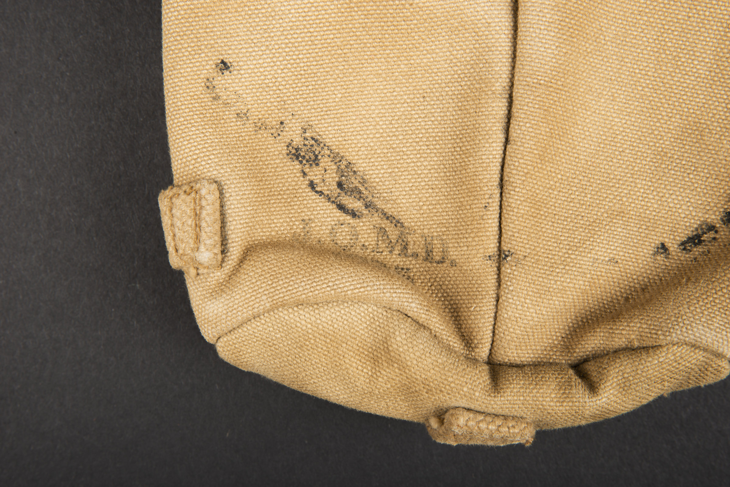 En toile OD, les sangles de transport sont manquantes. Fabrication JQMD 1935. Reste de marquage US sur la face avant. A noter une certaine usure et patine de la pièce. Photos supplémentaires sur... en savoir plus