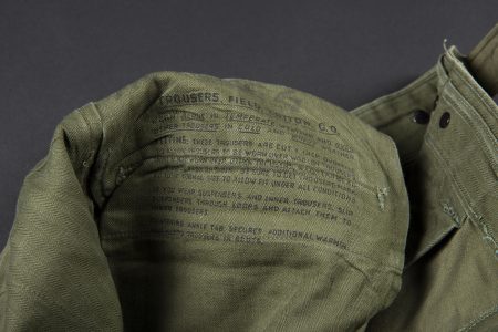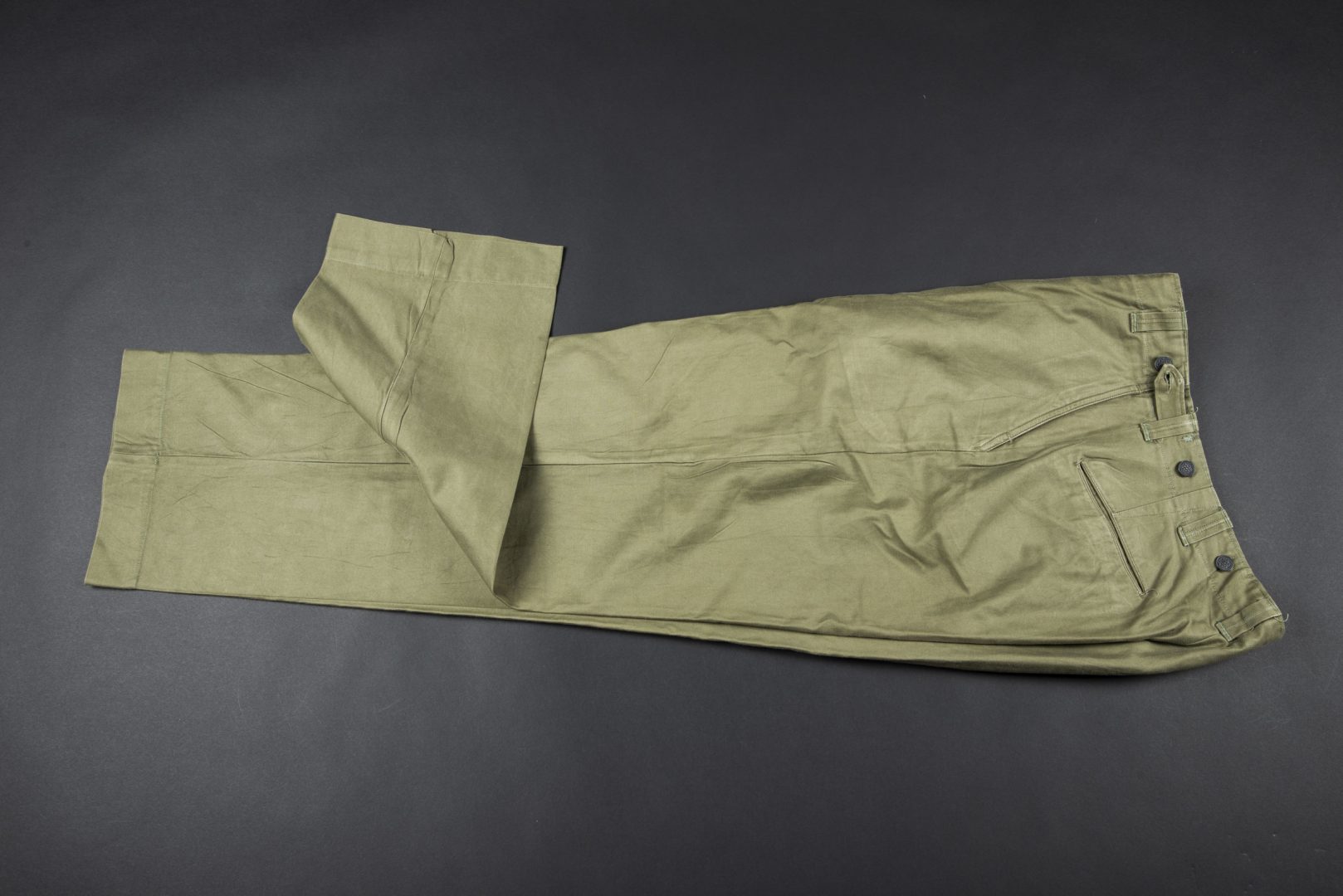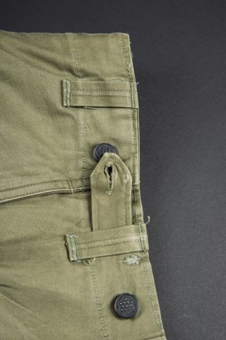 Modèle M-1943, troisième modèle en tissu HBT Kaki. Tous les boutons sont présents. Etiquette indiquant une taille W 32 L32. Instructions tamponnées à l’intérieur. A noter quelques... en savoir plus