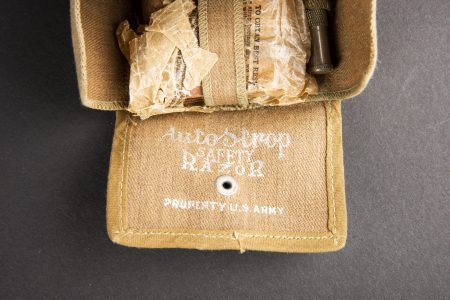 Comprenant deux savons sans emballage, marqués USA. Un miroir de poche sans marquage, le verre comporte des éclats. Une trousse de toilette, vide, fabrication Pioneer. Une boite complète de... en savoir plus