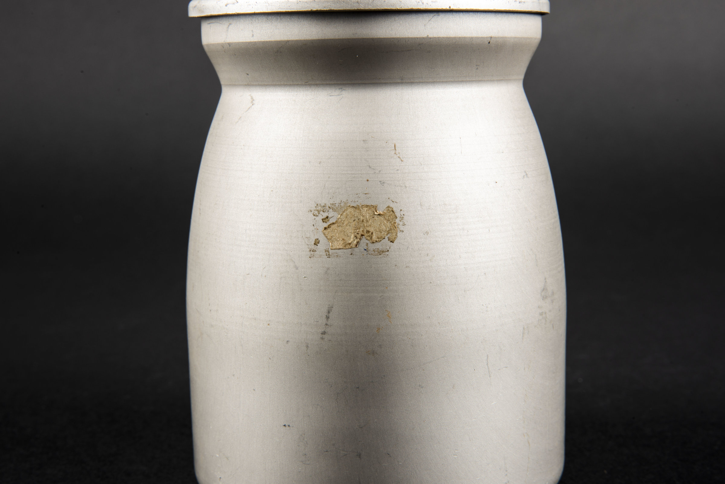 En aluminium, couvercle présent. Fabrication US Wear Ever 1940. A noter quelques marques d’usure et tâches de peinture. Photos supplémentaires sur www.aiolfi.com. Additional photos on... en savoir plus