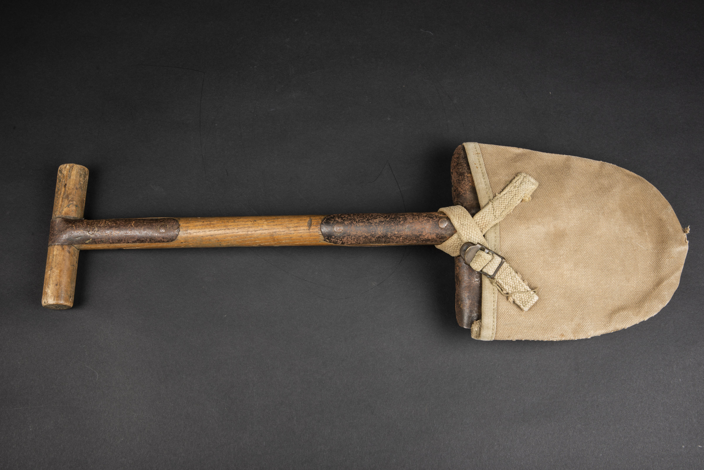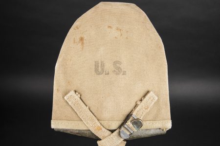 Deux pelles en T. Manches en bois dont l’un dispose de sa peinture kaki. Marquages US présents. Les housses sont complètes, l’une dispose de son étiquette de stock et la seconde est... en savoir plus