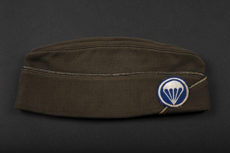 En tissu chocolat, liseré noir et argent du corps des officier. Insigne d’infanterie parachutiste monté main. Intérieur doublé en satinette jaune. Bandeau de transpiration en cuir.... en savoir plus