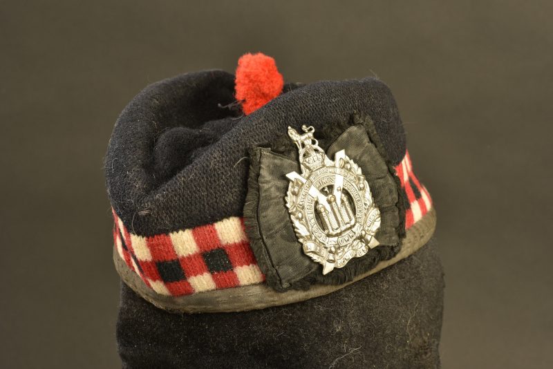 En drap de laine noir, pompon présent. Cap badge métallique non garanti d’origine, monté sur un tartan noir. Les lanières en tissu coton noir sont complètes. Intérieur doublé en tissu... en savoir plus