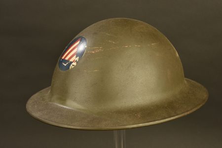 Coque en métal, type mineur, peinture kaki à 80%. Insigne de l’Air Raid Wardens, présent à 80%. Intérieur en toile écru, complet, bandeau de transpiration en cuir noir, jugulaire manquante. Fabrication Mc Donald Co Los Angeles. Reste d’étiquette nominative marquée 18.00. A noter une certaine usure et patine de la pièce. Photos supplémentaires sur www.aiolfi.com. Additional photos on www.aiolfi.com.