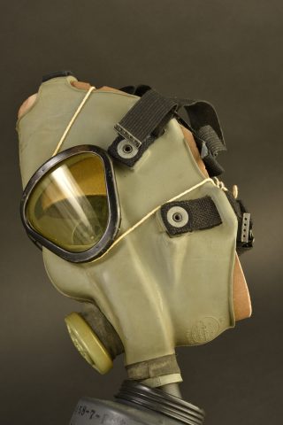 Housse en forte toile OD7, sangle de transport présente. Les deux boutons pressions sont fonctionnels, marquages Army Snout Type Service Mask. Masque complet avec son carton d’origine... en savoir plus