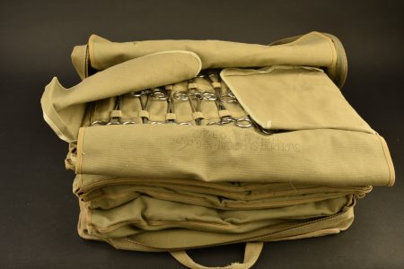 Housse ou valise en toile kaki, les poignées de transport sont présentes. Fermeture éclaire fonctionnelle, de fabrication Prentice. Contenant les 10 housse pour le matériel chirurgical, bien... en savoir plus