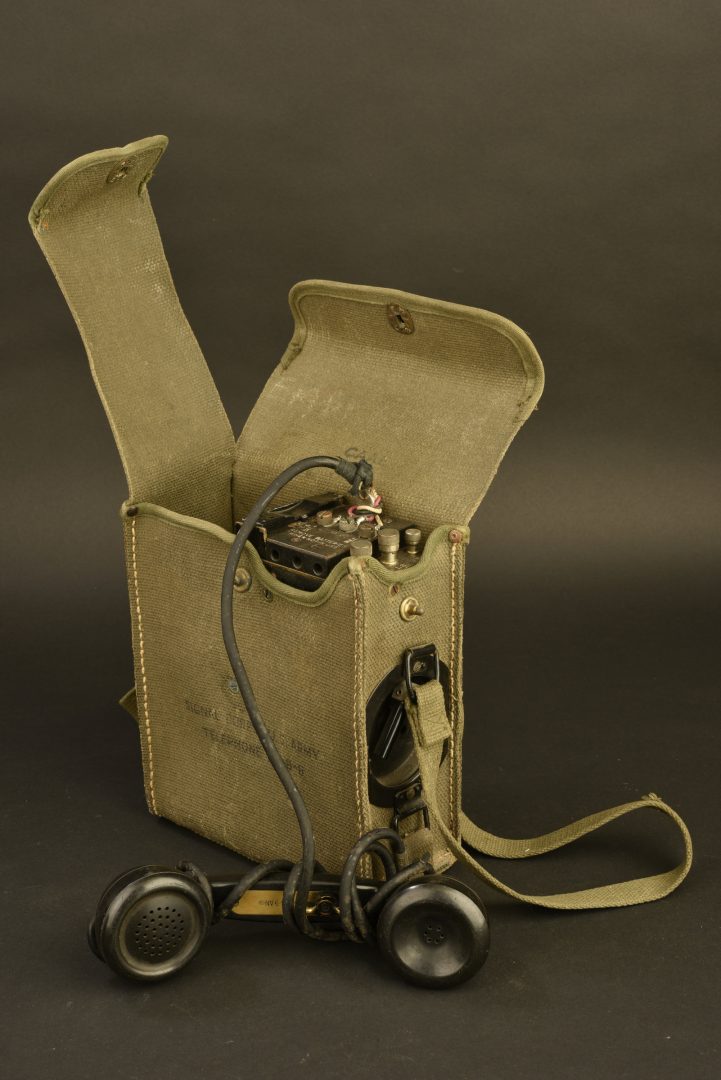 Housse en forte toile OD, bien marquée Signal Corps US Army Telephone EE-8-B. Sangle de transport en toile. Les boutons pressions sont fonctionnels. Téléphone complet avec son câble et sa... en savoir plus