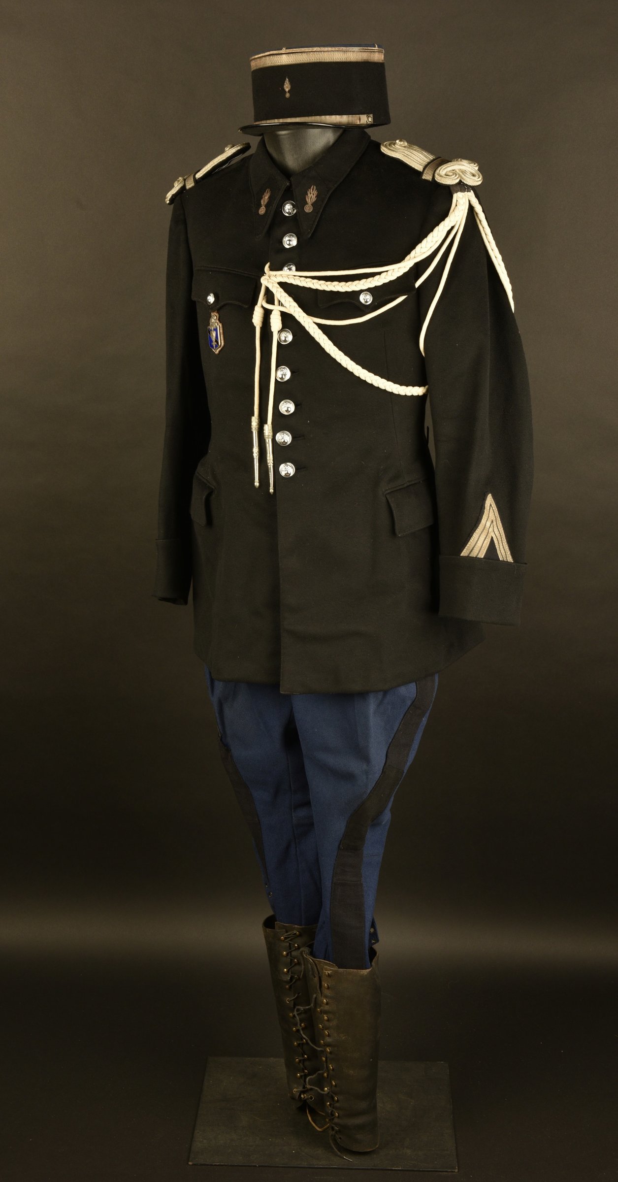 Veste montée avec les épaulettes et l’aiguillette blanche de grande tenue (du modèle pour le grade inférieur). Insigne de poitrine de l’Arme, créée par le Gouvernement de Vichy, en 1943.... en savoir plus
