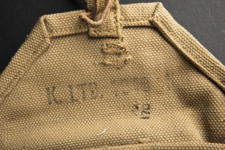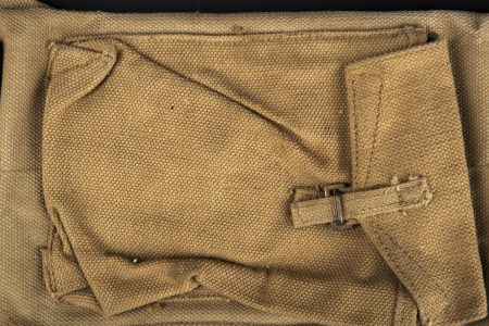 En forte toile web, toutes les sangles sont présentes. Vide. Marquages K LTD 1943 sous le rabat. A noter une légère usure de la pièce. Photos supplémentaires sur www.aiolfi.com. Additional... en savoir plus