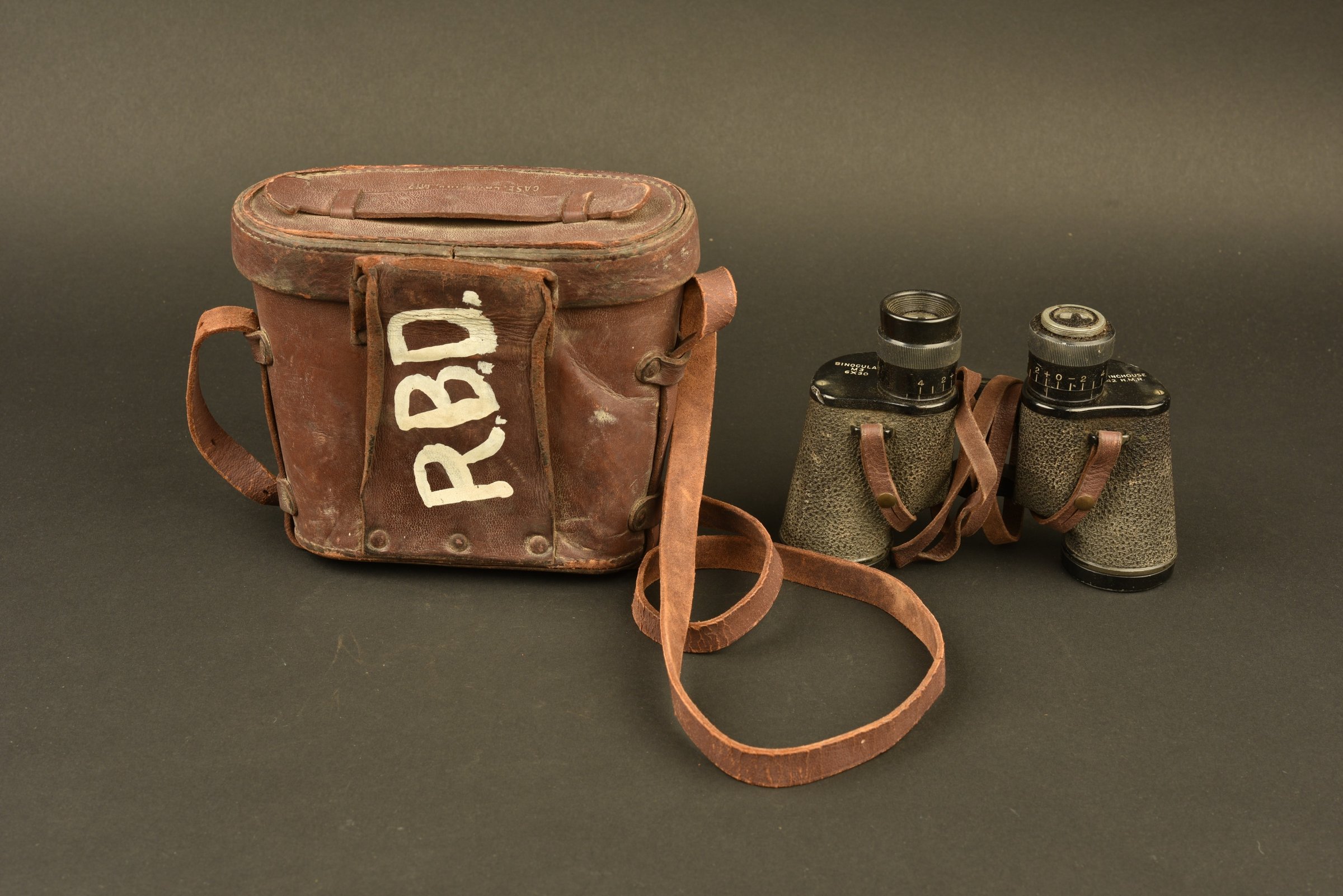 Revêtement en très bon état, un œilleton incomplet. Marquages Binocular M3 6X30 Westinghouse 1942 HMR. Sangle en cuir présente, optiques graduées présentant quelques tâches. Housse en cuir... en savoir plus
